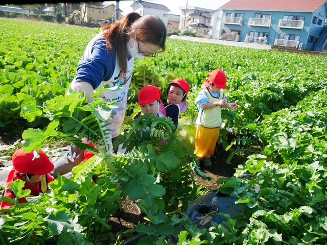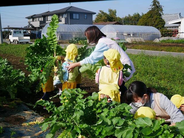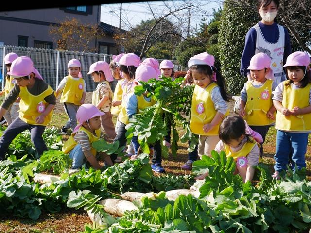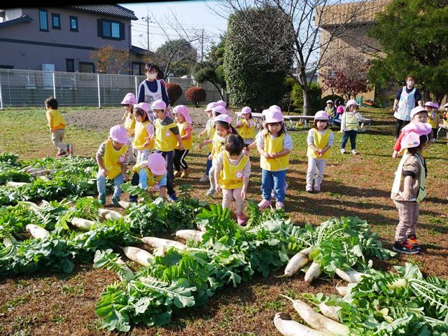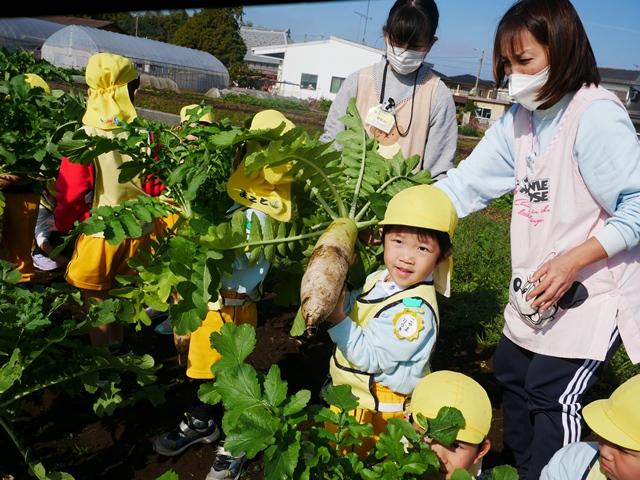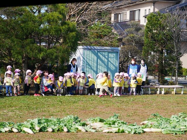 なかよしランドからほし組のお友だち、楽しみにしていた大根抜きを行いました。