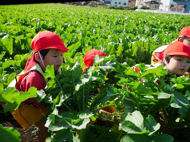 さて、とんぼ組さんも畑について大根の大きさにびっくり!