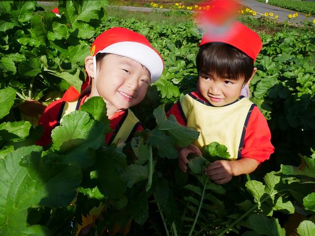 お家へのお土産!と重い大根も幼稚園まで大切に抱えて歩きました。