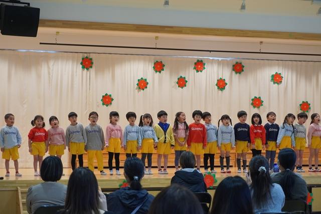 歌の発表は、A組 ♪そうだったらいいのにな B組 ♪にんげんていいな C組 ♪手のひらを太陽に