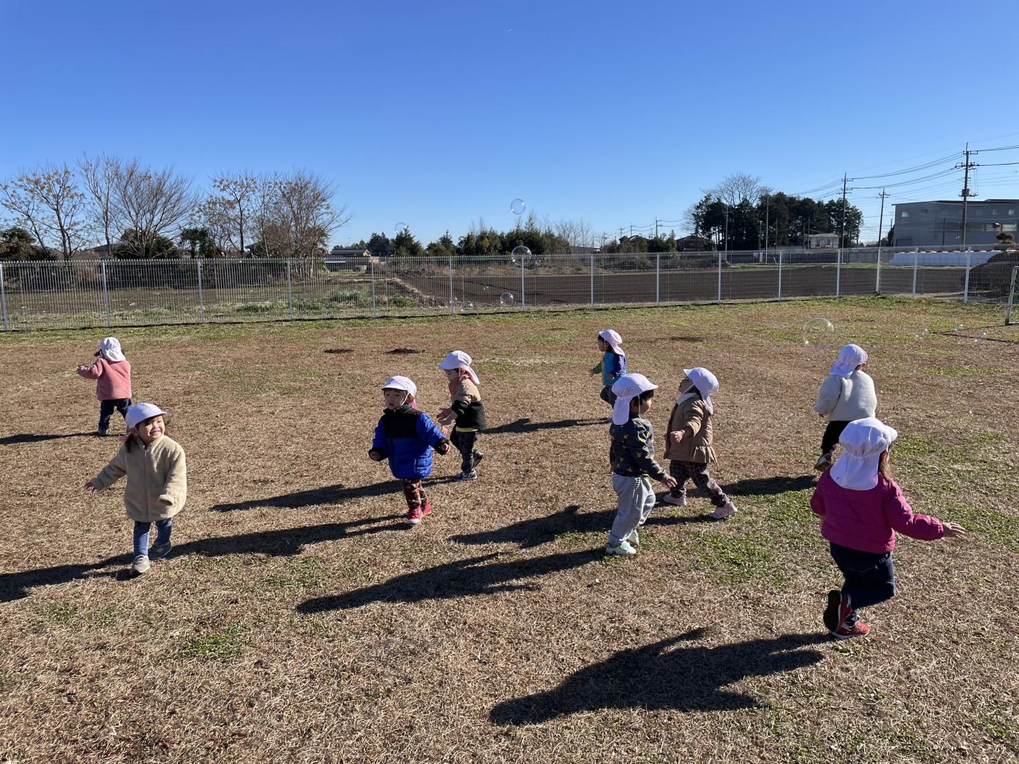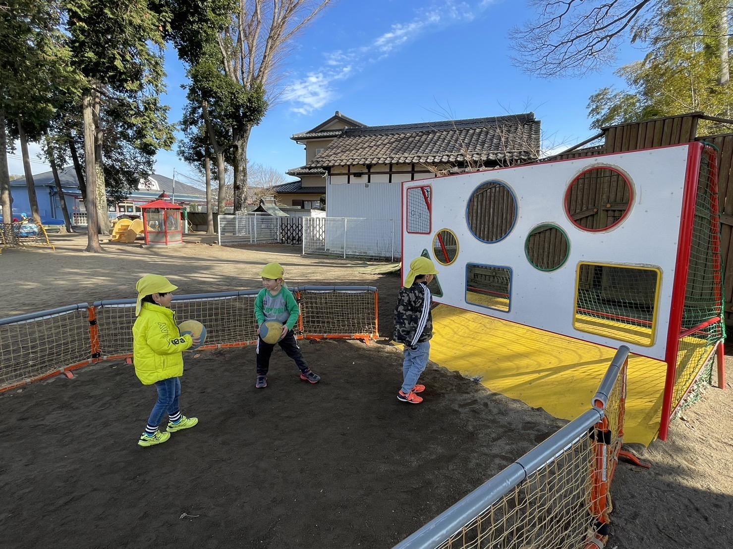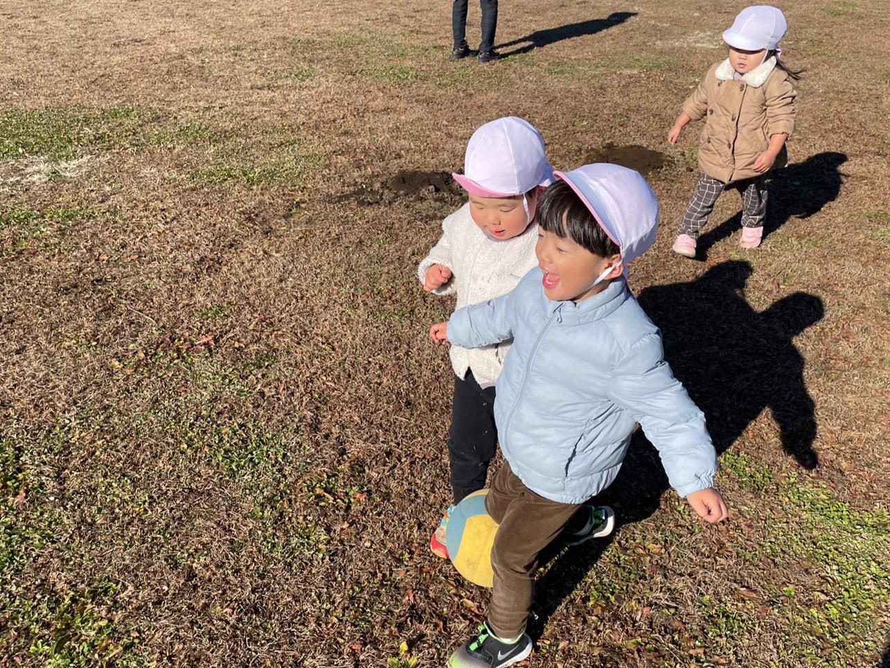 ひよこC組のお友だちも日当たりの良い場所でお外遊び♪