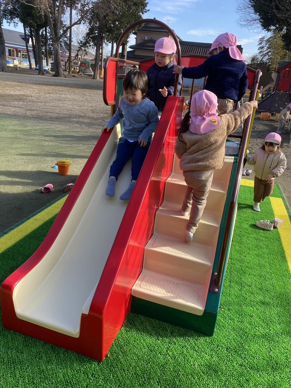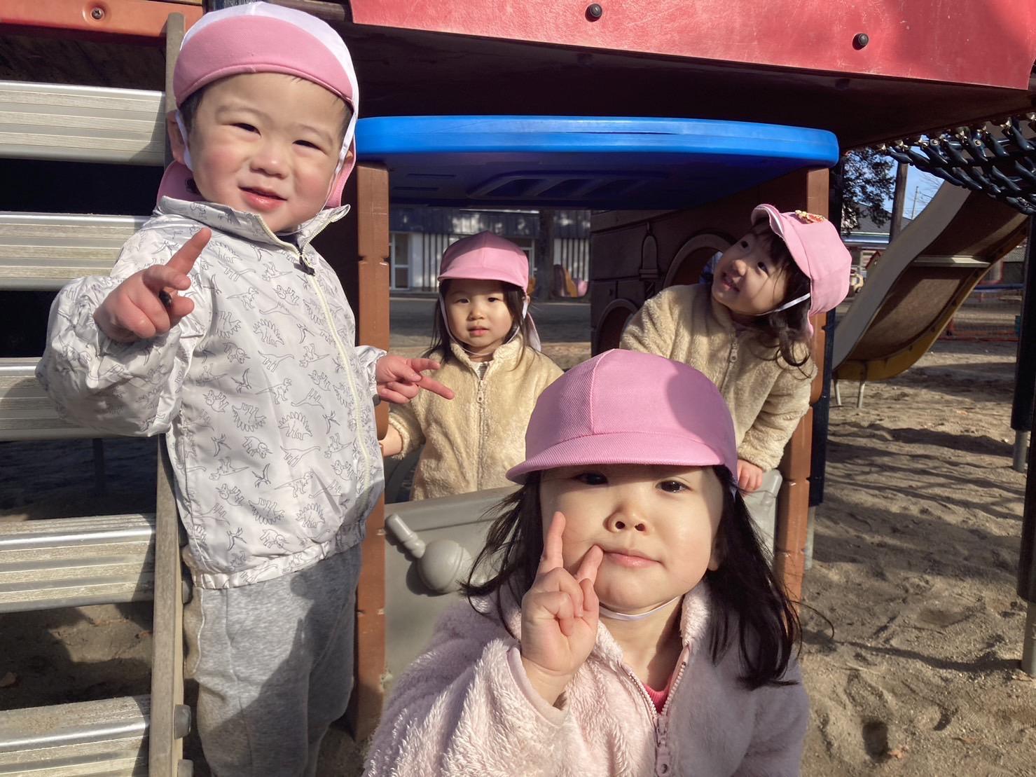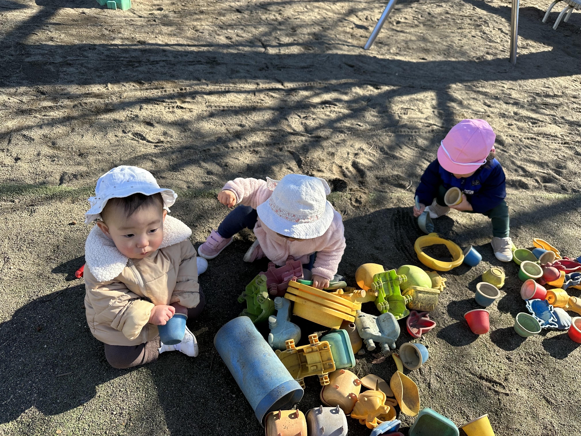 ひよこC組のお友だちも日当たりの良い場所でお外遊び♪