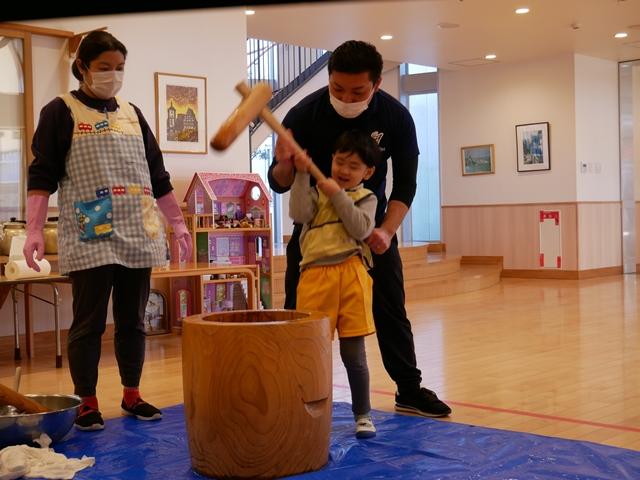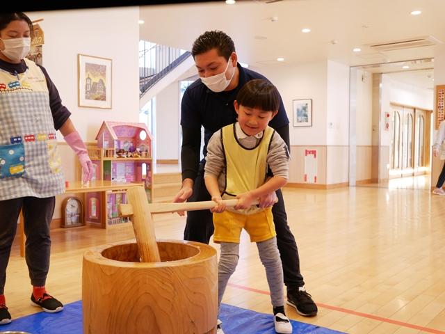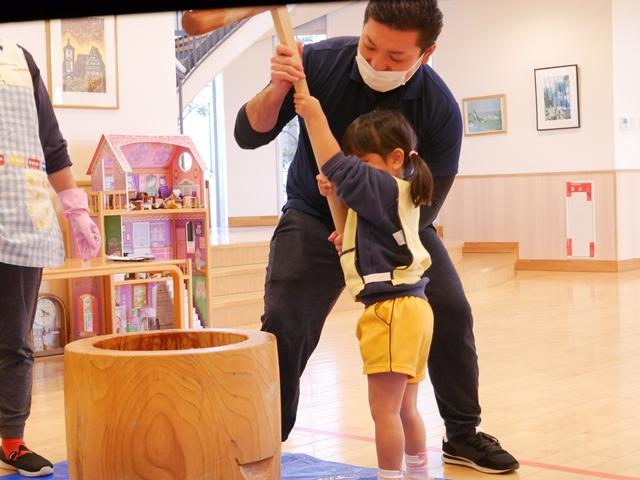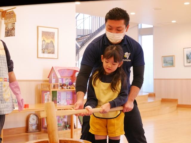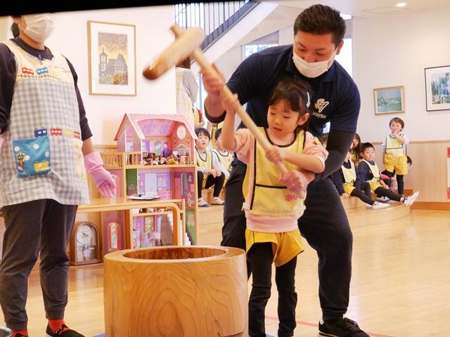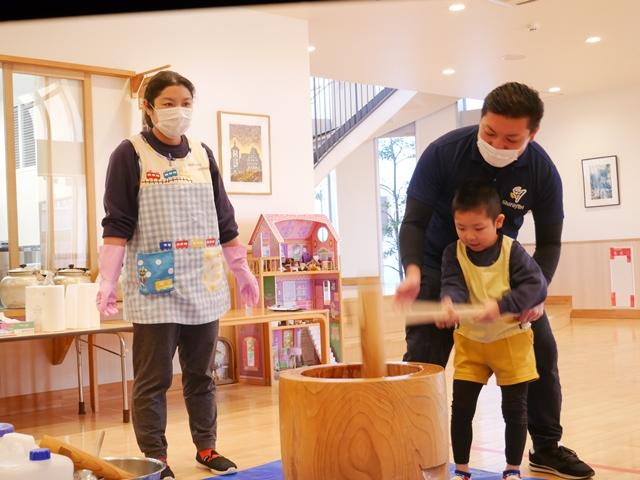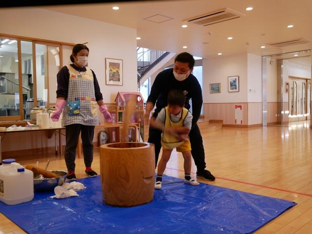 今日は、園内行事で餅つき大会を行いました。