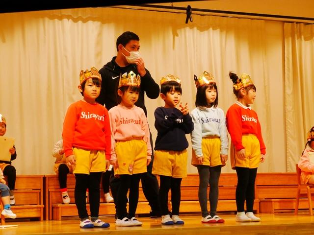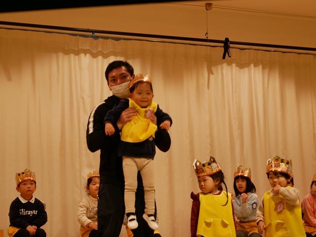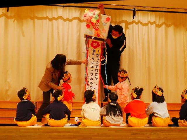 みんなでホールに集まり、1月生まれのお友だちをお祝いしました。