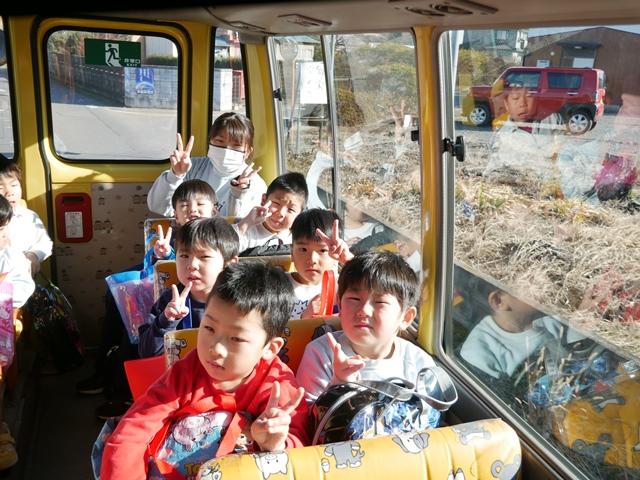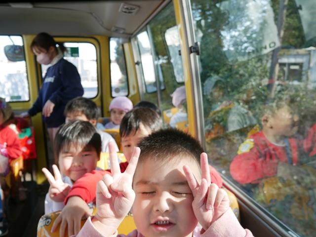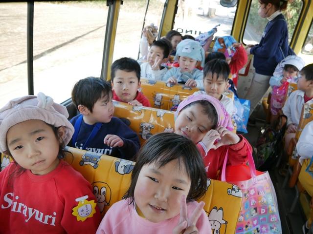 スイミングを終えて、幼稚園バスに乗って園に戻ります。