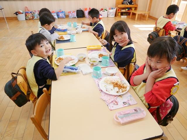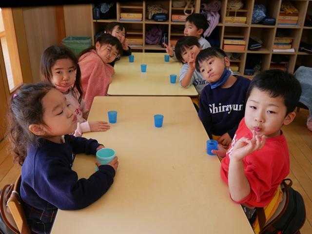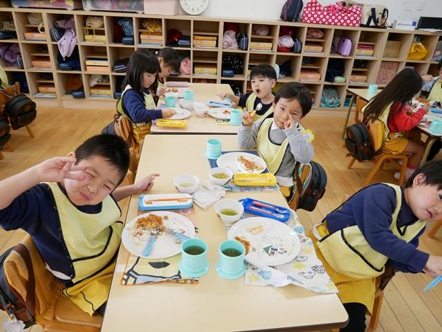 給食もモリモリ食べ。歯磨き・フッ素のうがいもします。