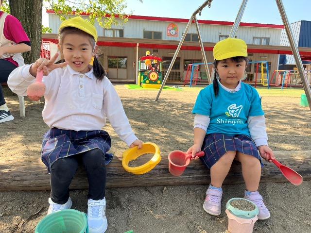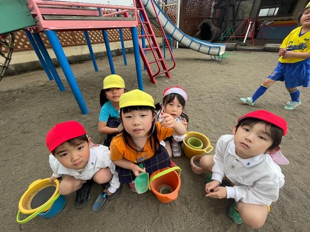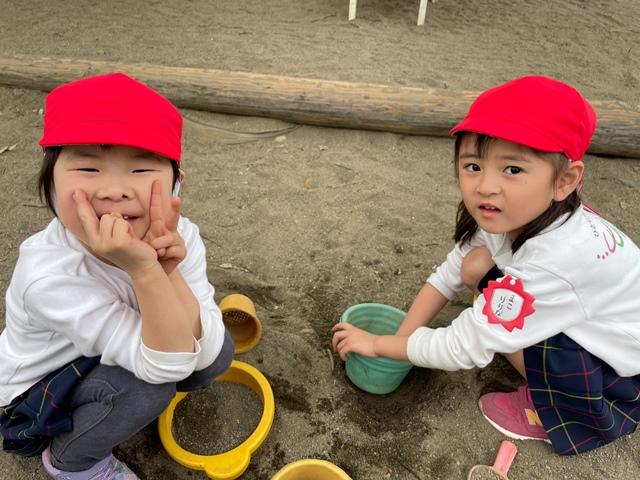 春の暖かな日差しのもと、走り回って元気に遊んだり、お砂場でお団子作りやお料理ごっこをしたり仲良く遊んでいます♪