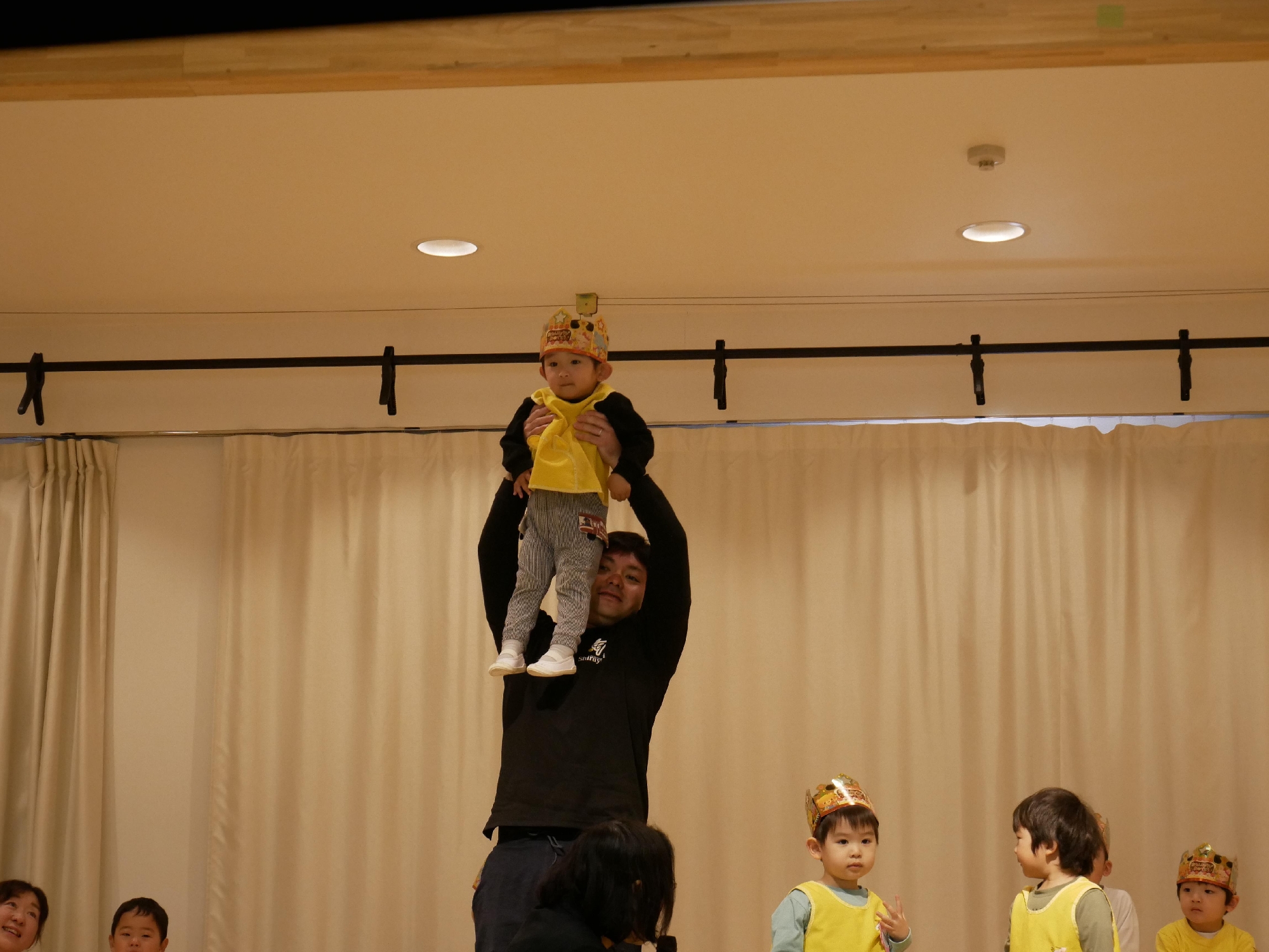 お誕生会では、吉羽先生から高い高いのプレゼント。園長先生から、誕生ブックのプレゼント♪