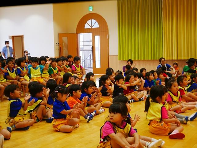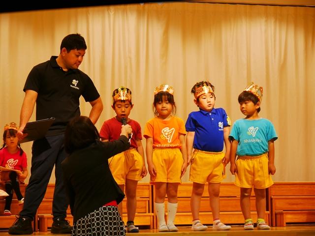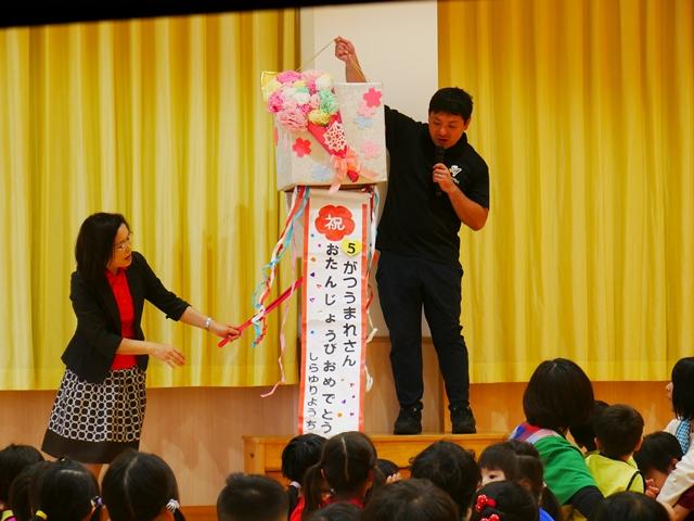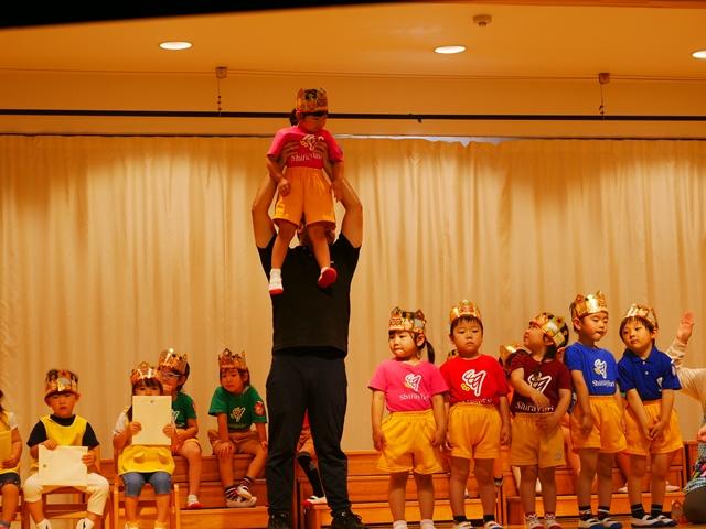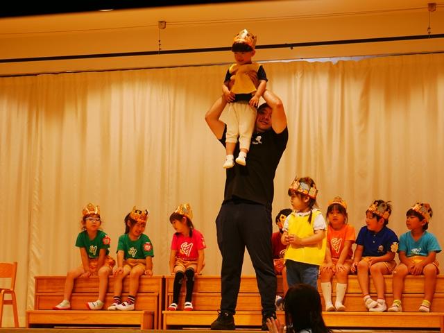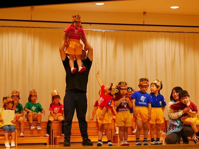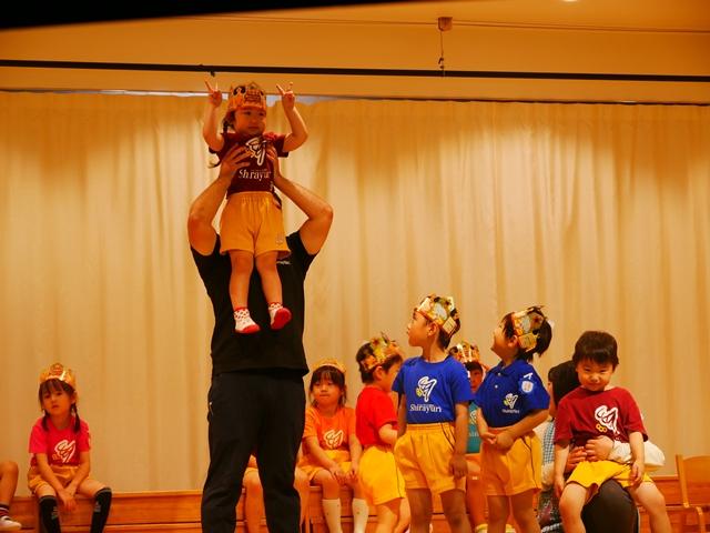 少し照れながらお名前を言ったあと、吉羽先生からの“たかいたかーい”をしてもらい、園長先生からプレゼントを貰いました♪