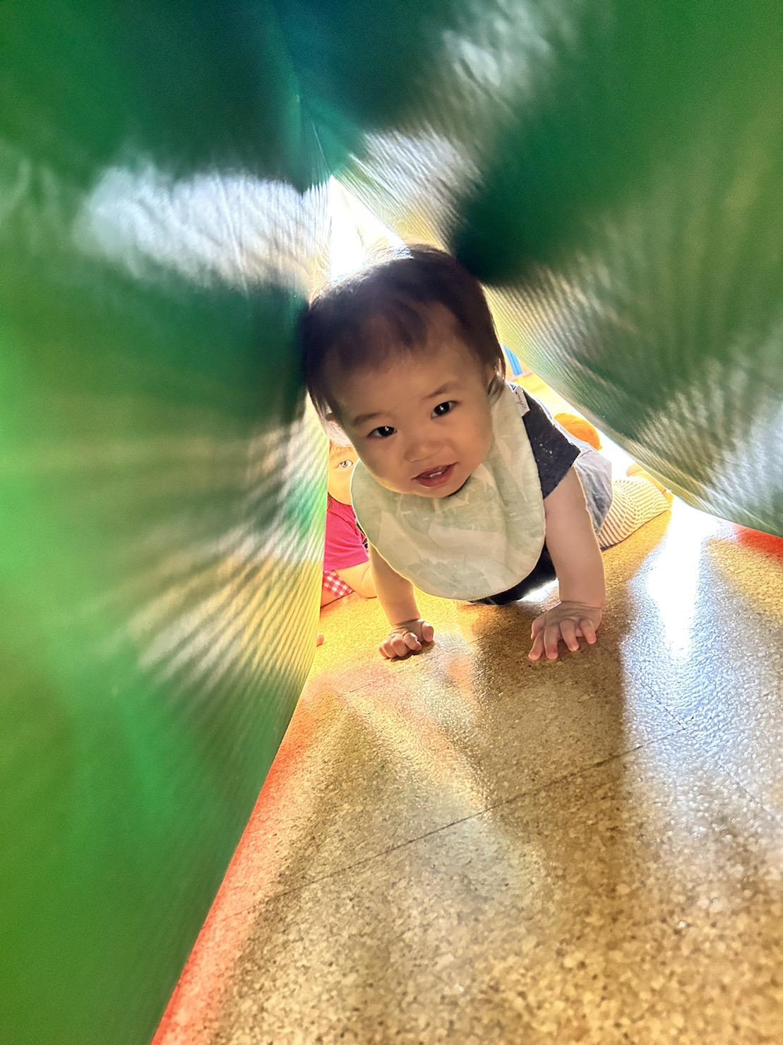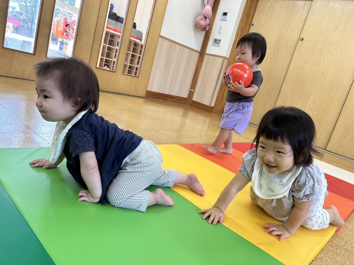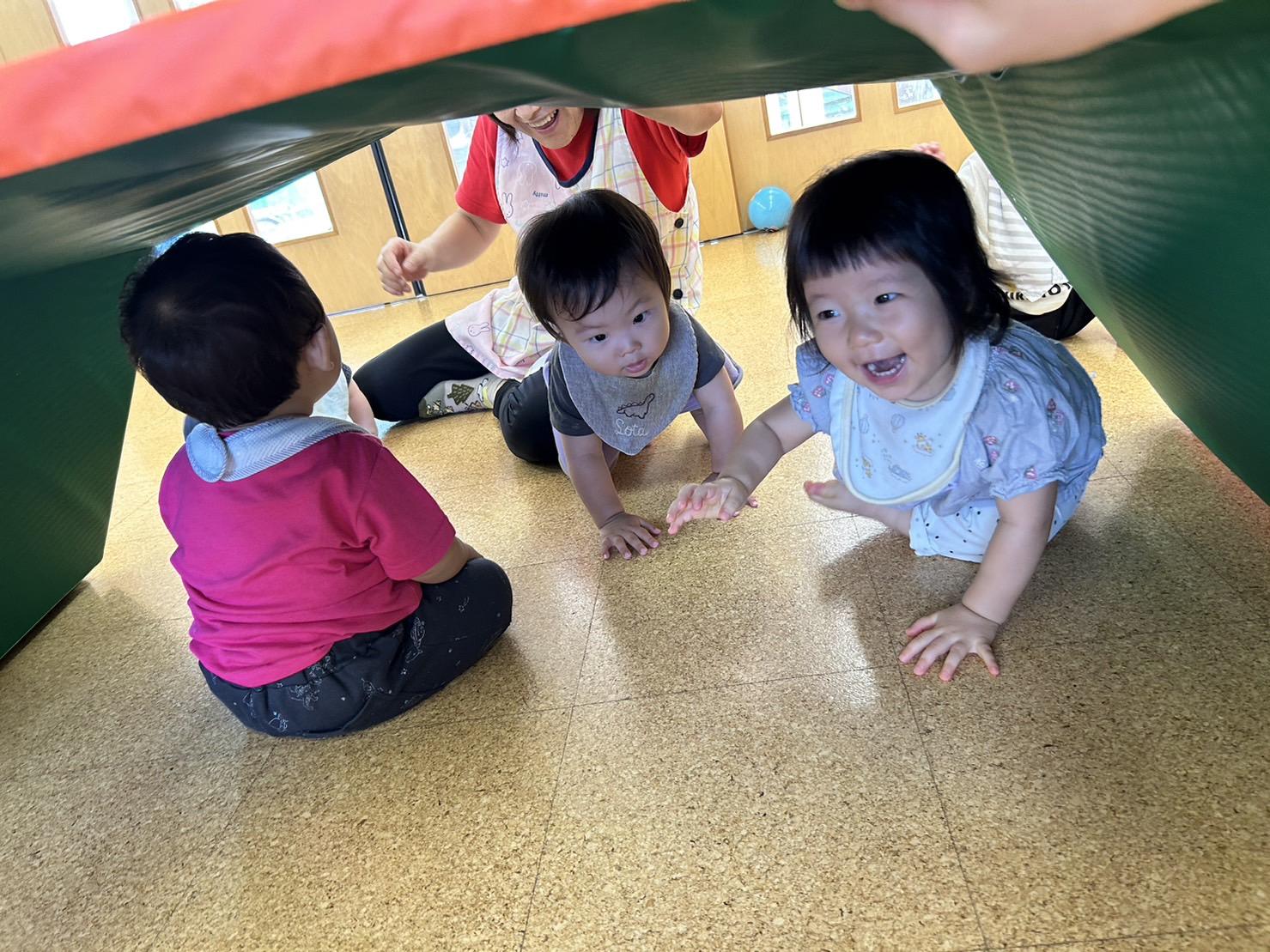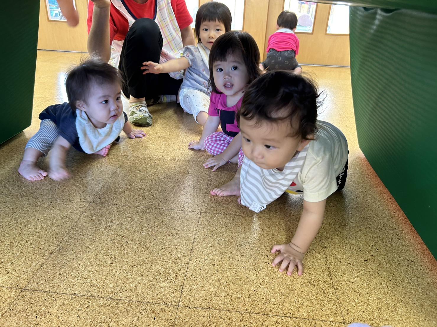 お友だちとハイハイをしたり、マットのトンネルをくぐり、笑顔いっぱい過ごすことが出来ました♪