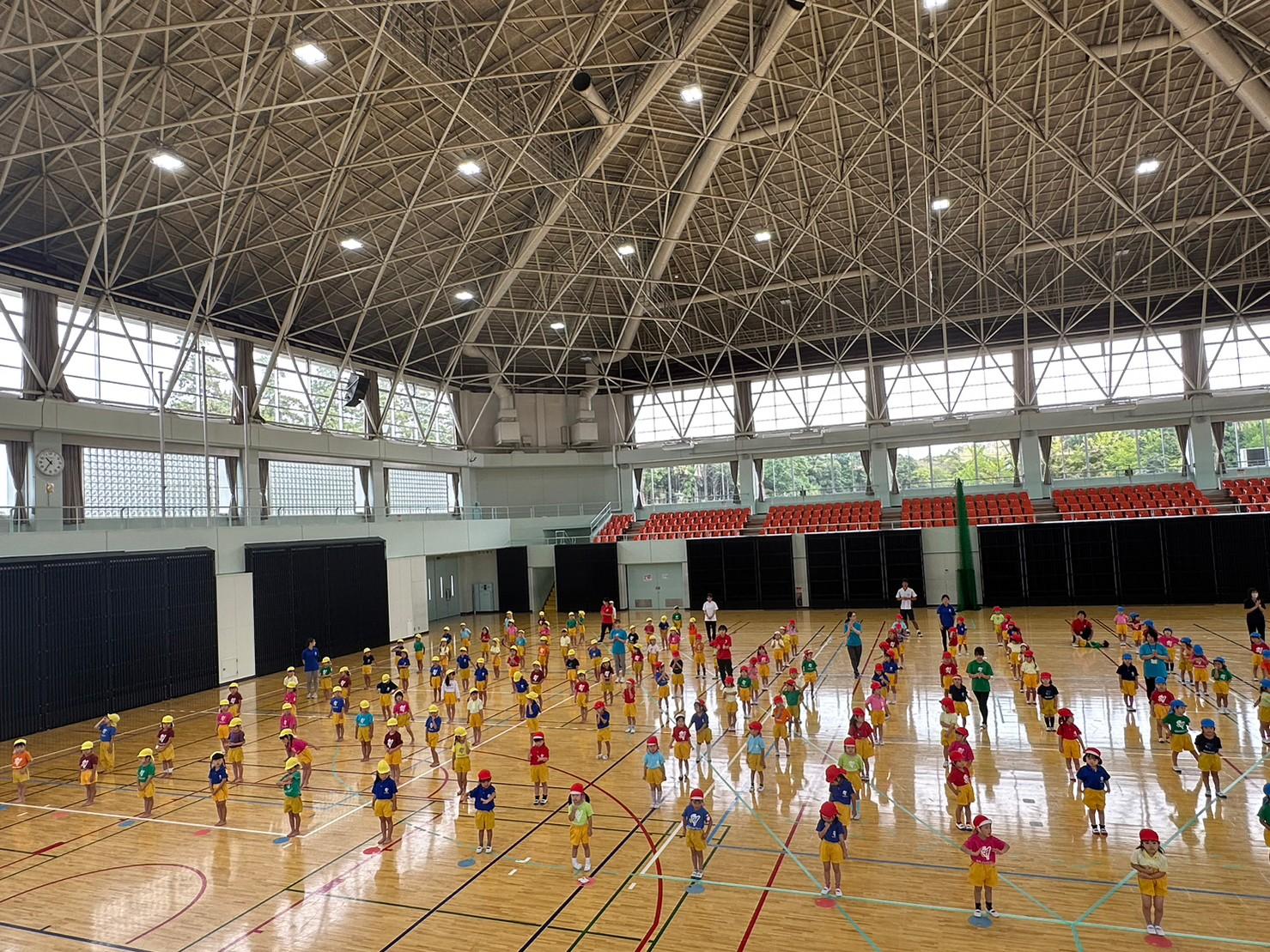本番を1週間後に控え、ふれあいスポーツセンターにて全学年揃って予行練習を行いました。
