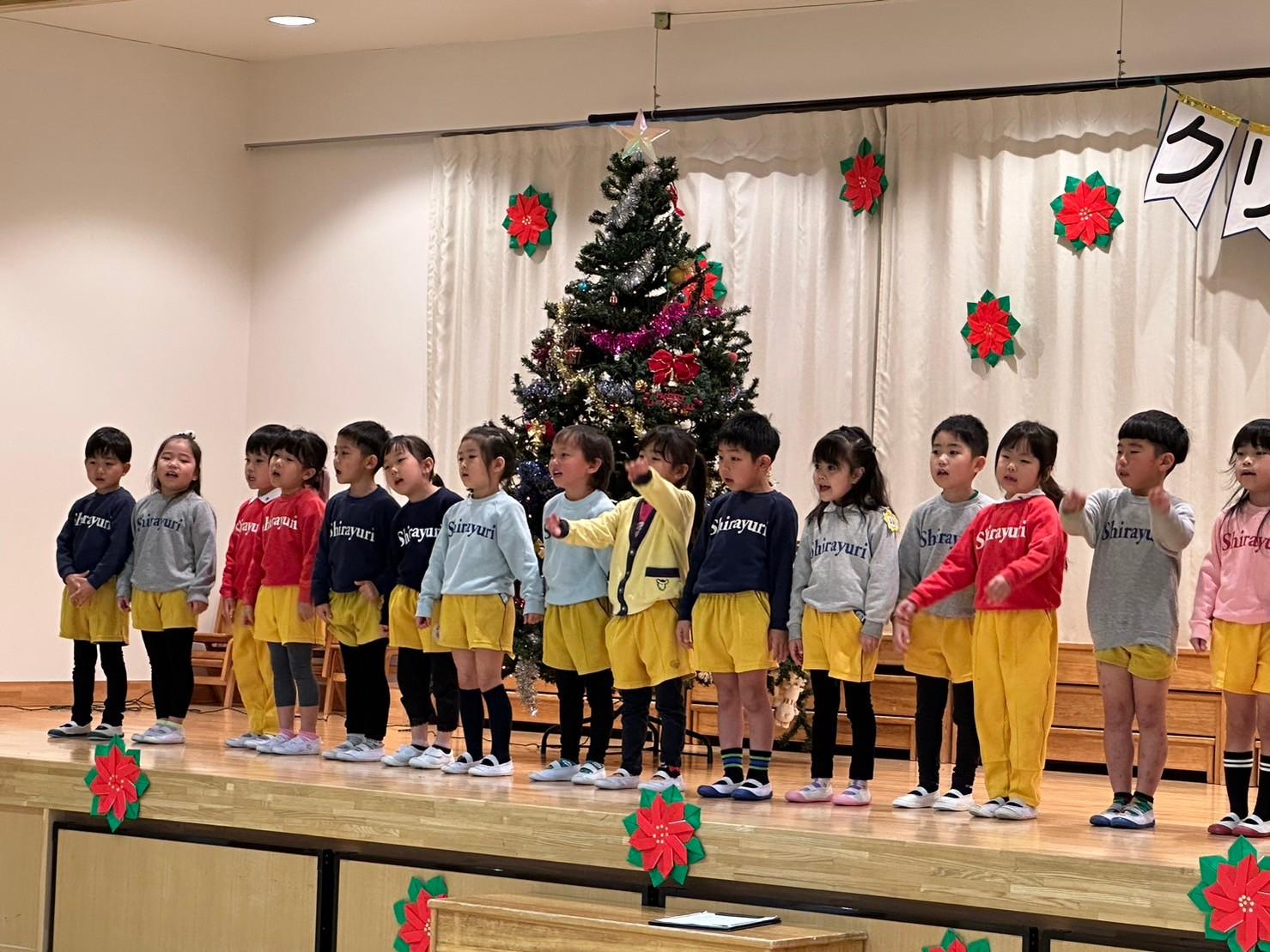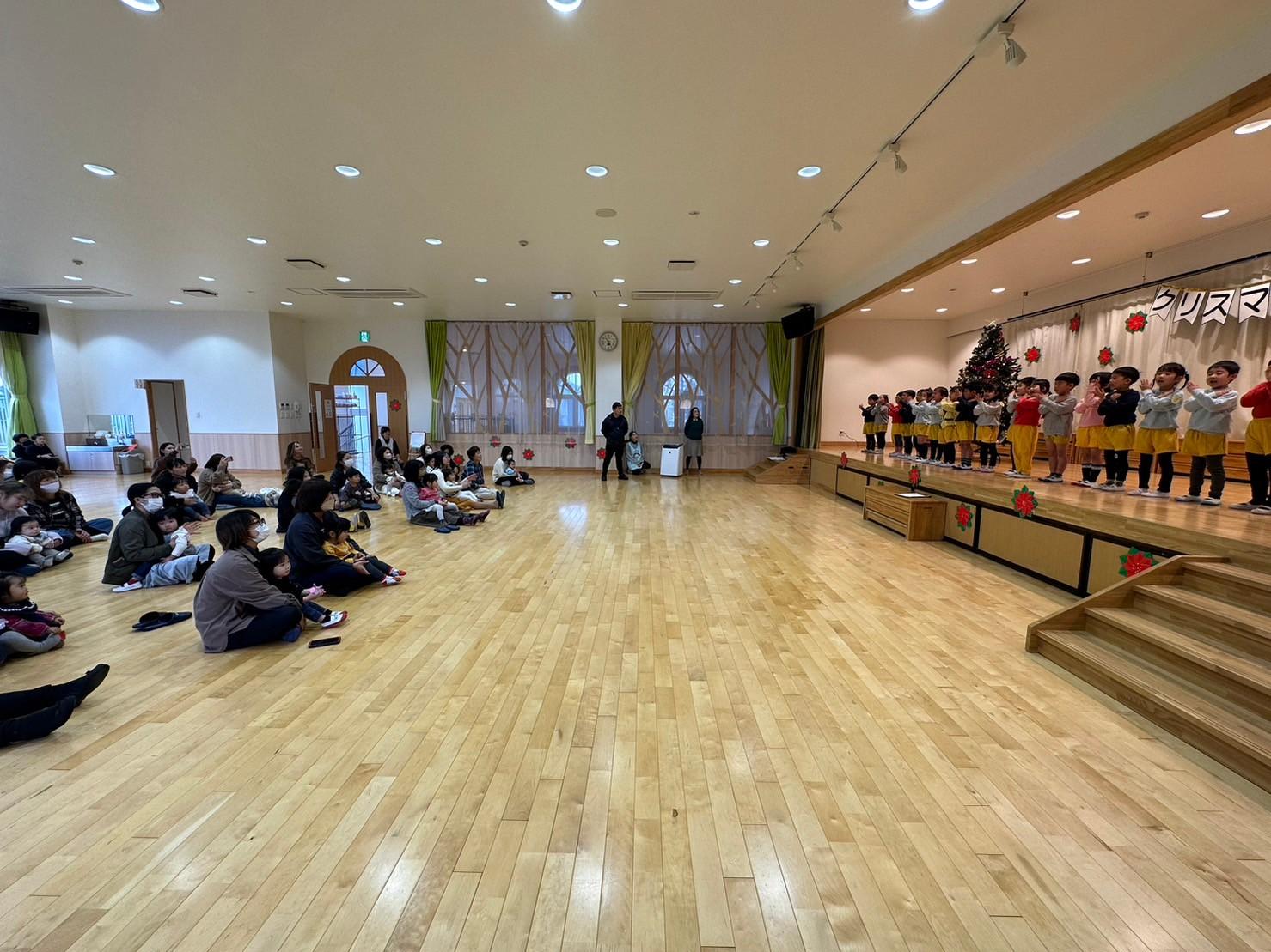 みんなで幼稚園のホールに集まり、楽しいクリスマス会の始まりです。
