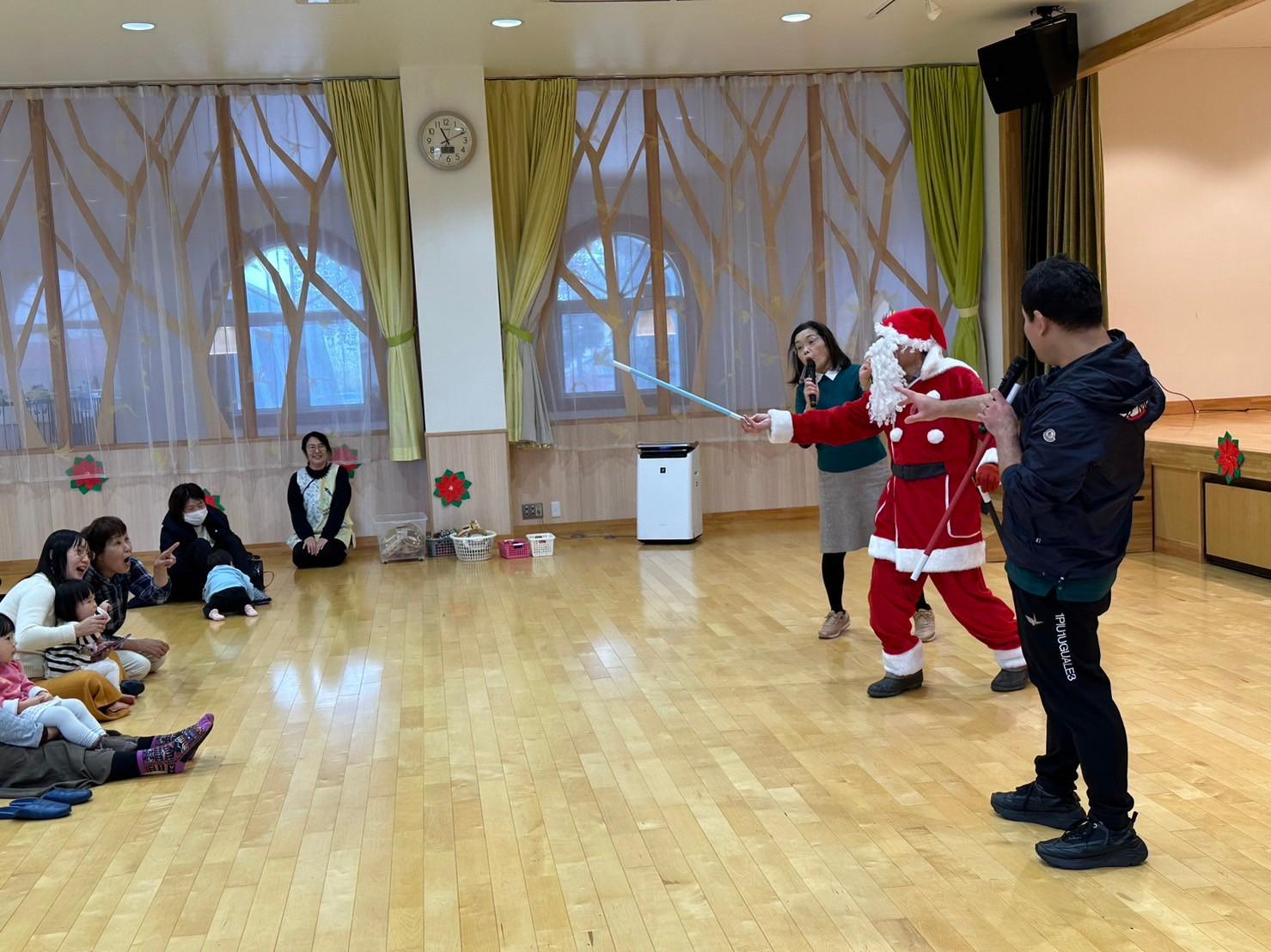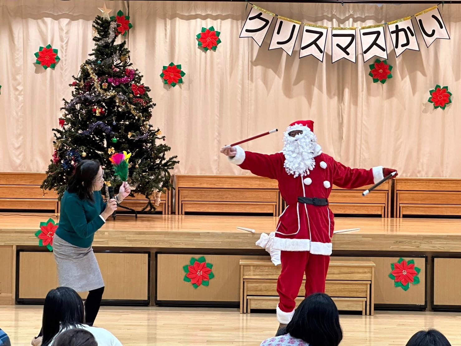 サンタさんが不思議な魔法の手品をみせてくれ、会場は大盛り上がり!!