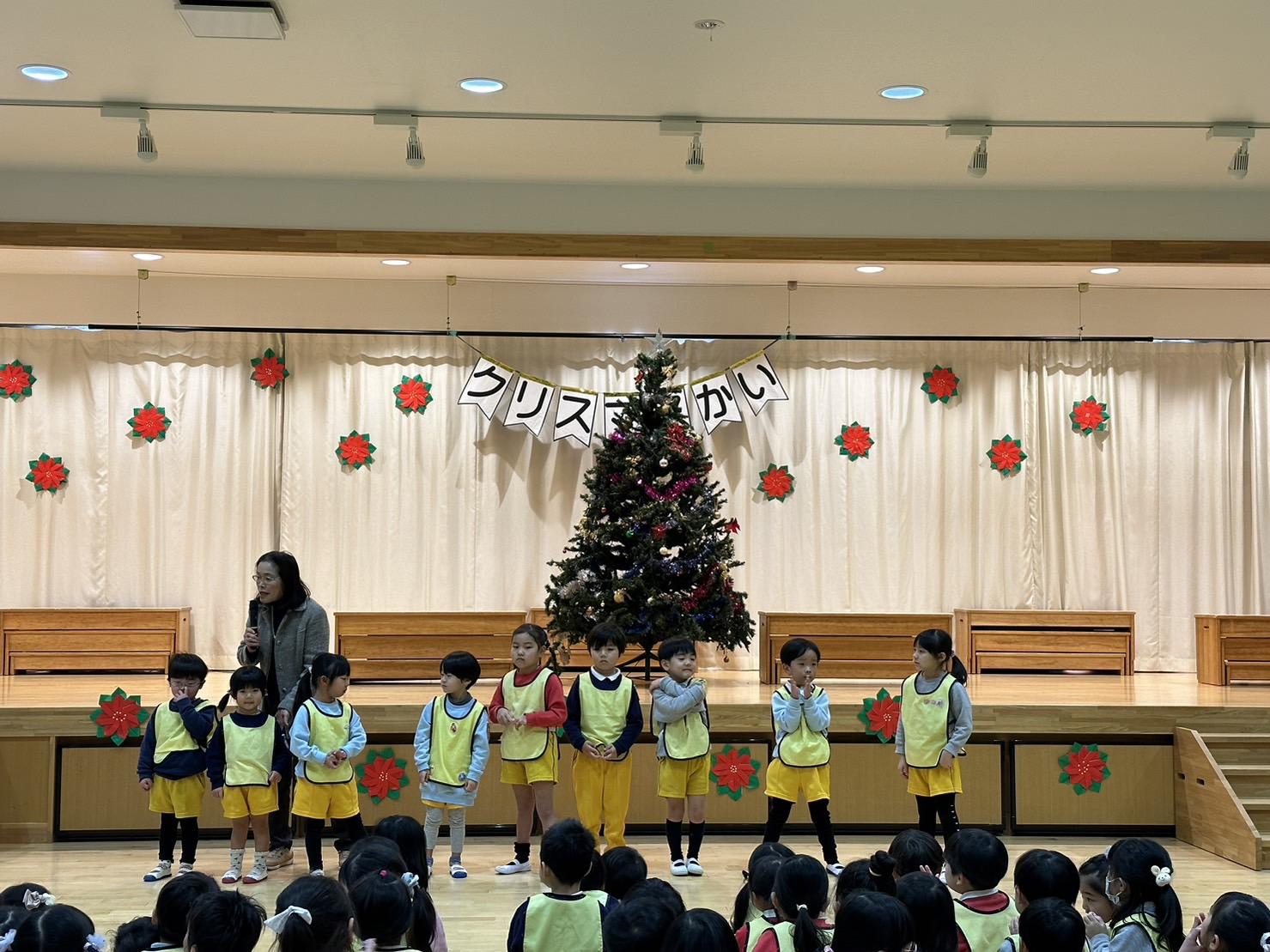 終業式では、各クラス代表のお友だちに冬休み楽しみにしていることを発表してもらいました。