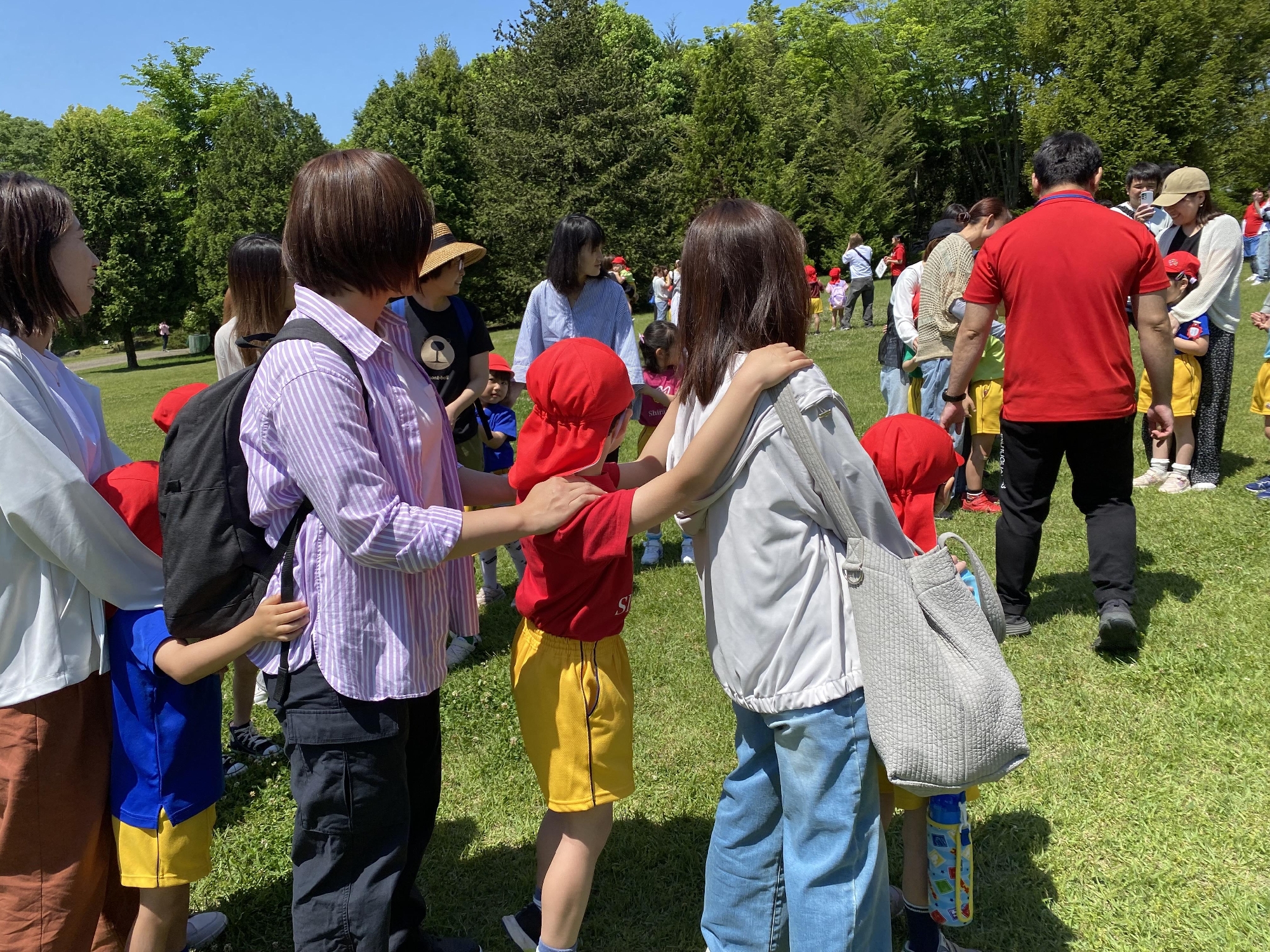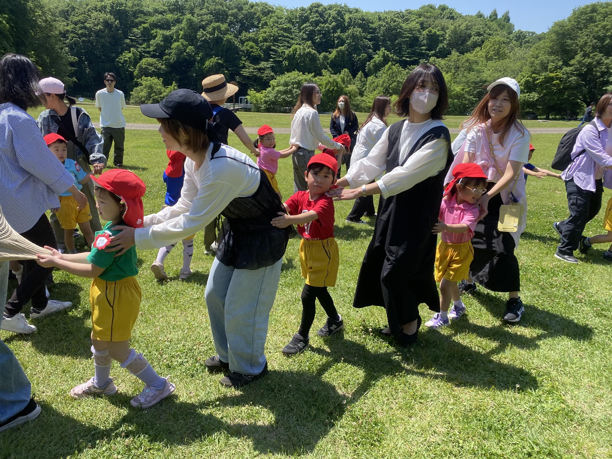 広い芝生エリアでは、クラスごとのレクリエーション。
