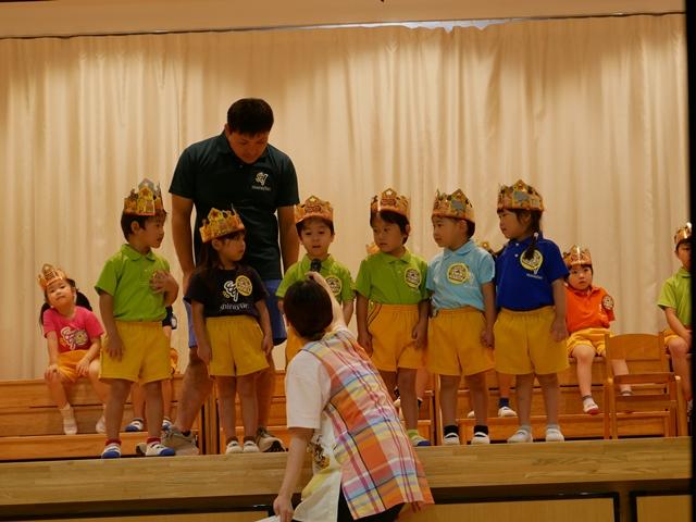 誕生児のお友だちはキラキラの冠をかぶり舞台へ上がります。
