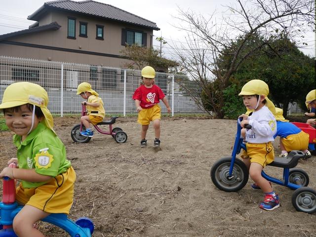 かけっこや三輪車で遊びたくさん身体を動かしました。