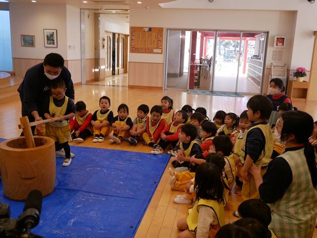 先週の金曜日には、みんなで餅つき大会を行いました。