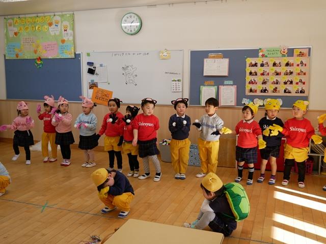 外で楽しく遊んだ後は、1月生まれのお友だちの誕生会に参加しました。