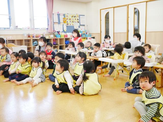 ノリノリでみてくれたひよこ組のお友だち。真剣な表情でよくみてくれたお友だち。昨年度お世話になったひよこ組の先生方応援ありがとうございました。