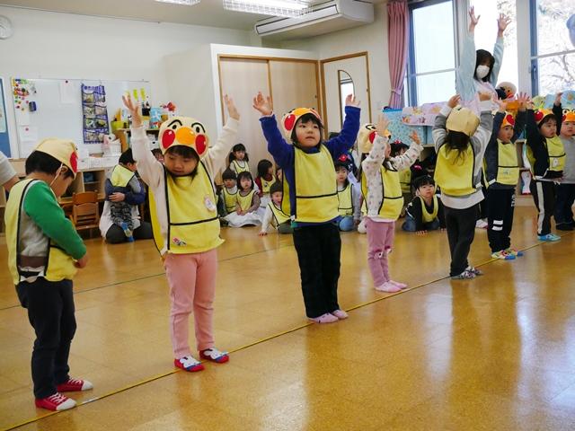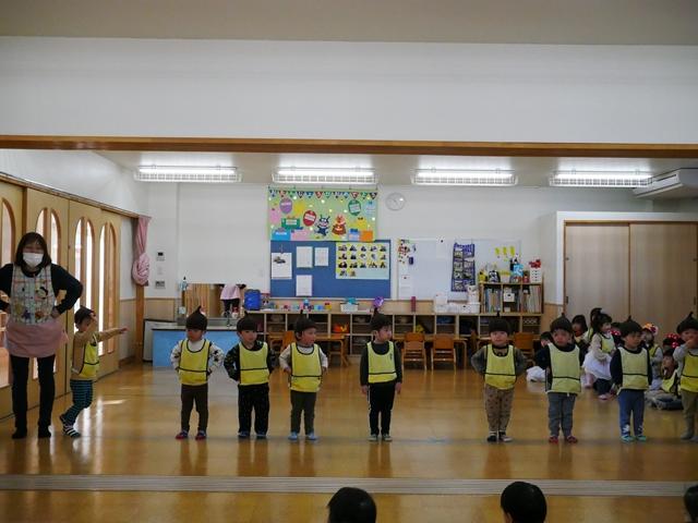 1月も後半にさしかかり、なかよしさんもおゆうぎ会に向けて練習を楽しんでいます。今日は、ひよこ組さんにダンスの発表をしました。