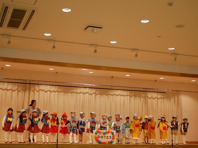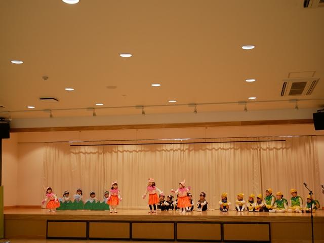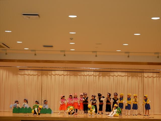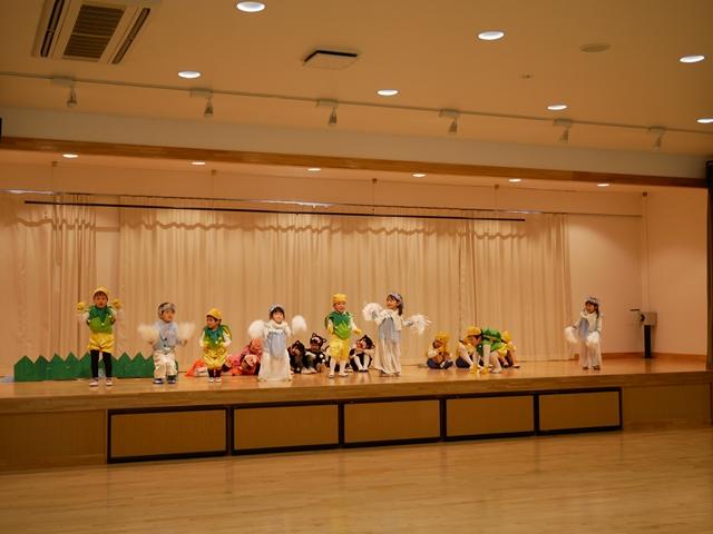 今日は、1部(なかよしA組・つくしA組・とんぼA組・ほしA組)のお友だちが本番と同じように衣装を着て舞台に立ちました。