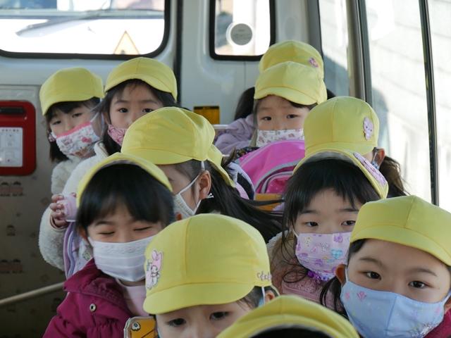 今日は、ほし組のお友達が幼稚園バスに乗って前山公園に園外保育に行ってきました。