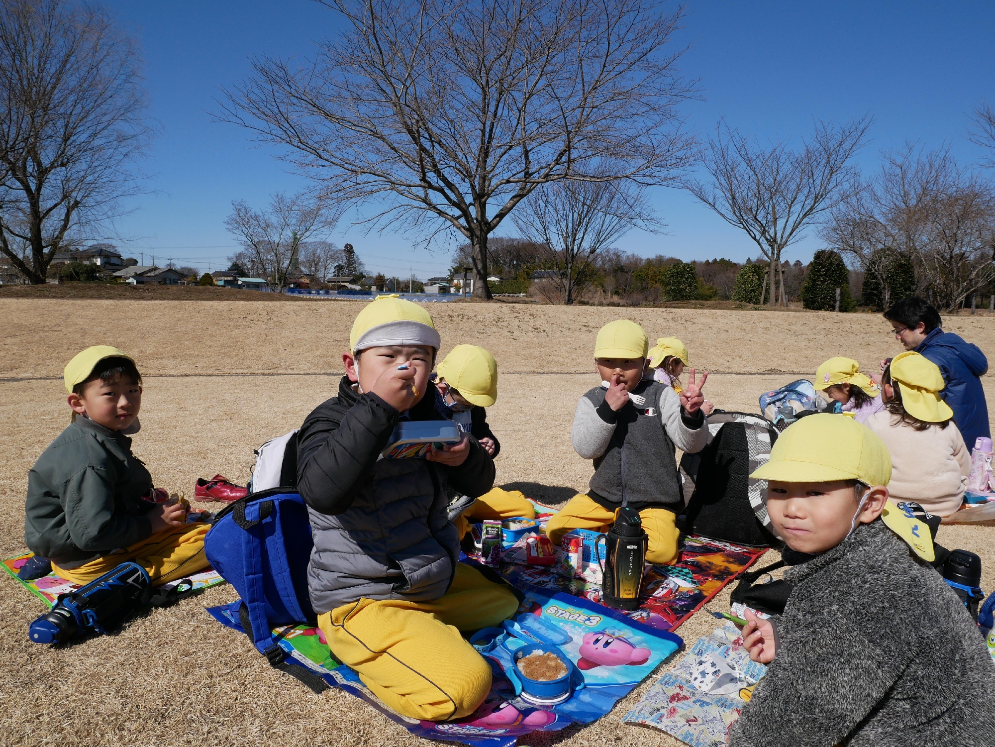 たくさん遊んだ後に、お外で食べる手作りお弁当は格別ですね。