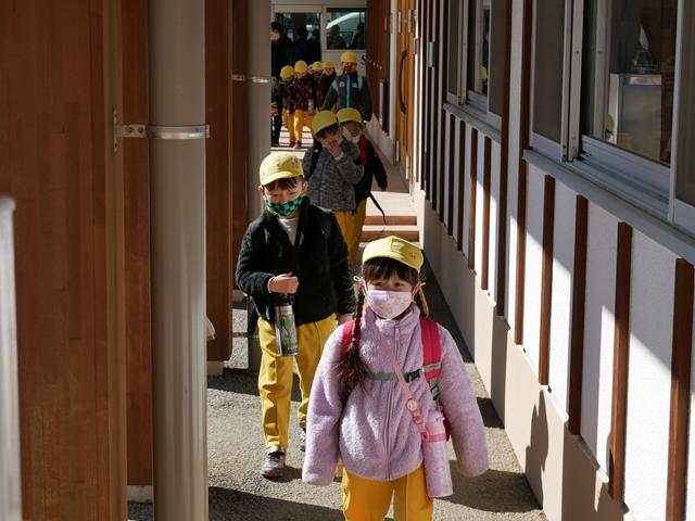 お弁当・おやつを食べて、幼稚園に帰ります。