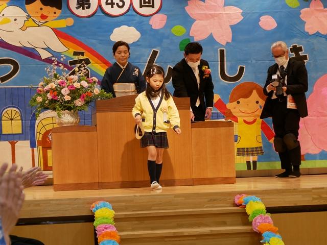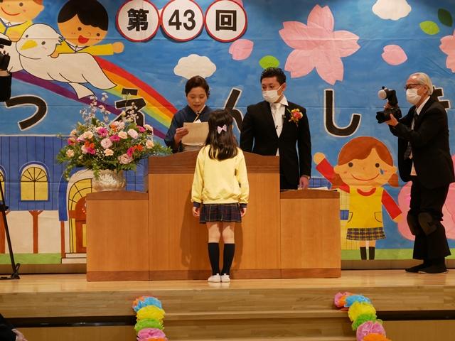 園長先生からひとりずつ修了証書をいただきます。みんなとても堂々としていて立派でした。