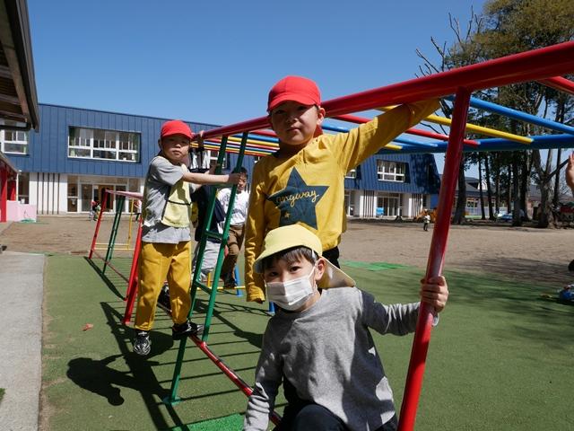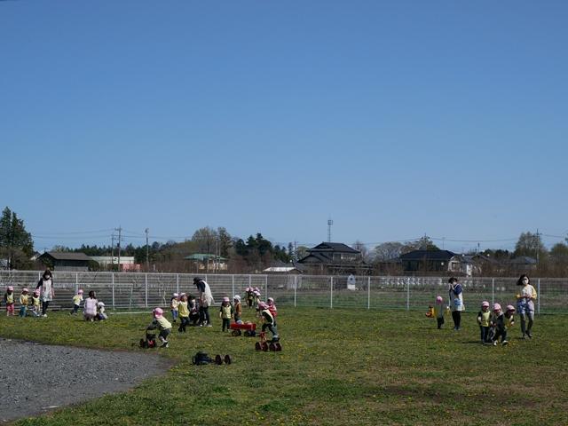 暖かい春の日差しを感じながら、登園しているお友達は外遊びを思いっきり楽しんでいます。