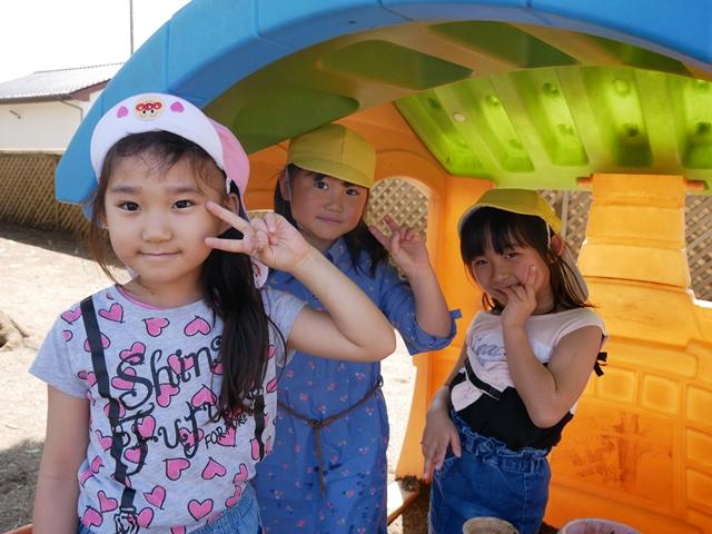 園庭では、つくし組・とんぼ組・ほし組のお友達が遊んでいます。