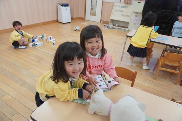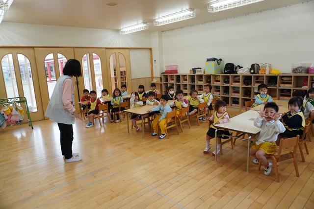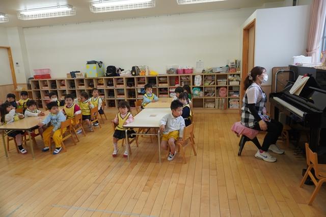 つくし組さんも先生と一緒に園歌や季節の歌を歌ったり、出席確認では元気にお返事したりしています。