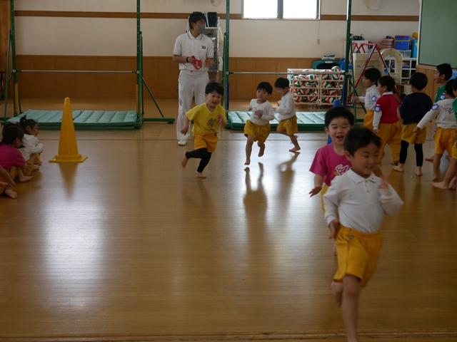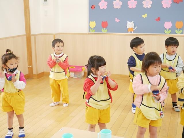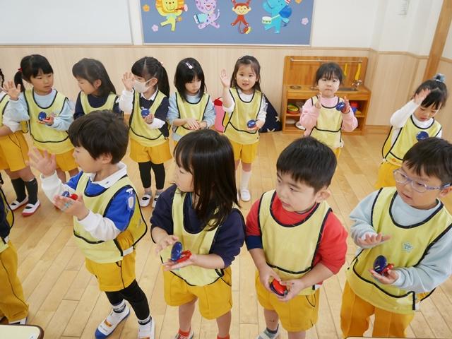 A組、B組、C組の順に松坂先生とカスタネット♪
