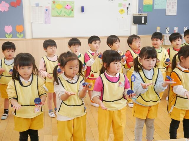 つくし組さんからとんぼ組さんに進級をしたこどもたち。