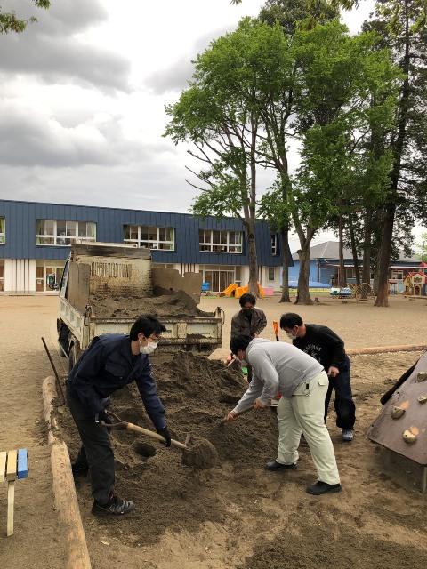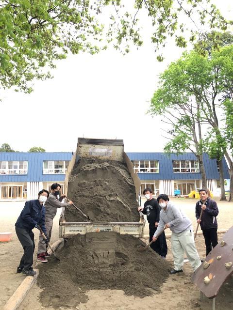 そして、昨年度お子様の卒園とともに退任された4名の役員さんから砂場の砂をたくさんいただきました。