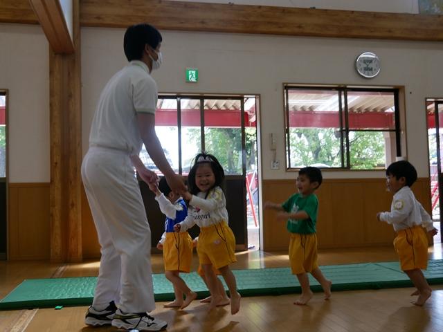浅井先生のまねっこをして、三角お山座り。みんなとっても上手ですね。