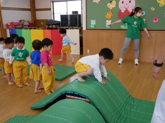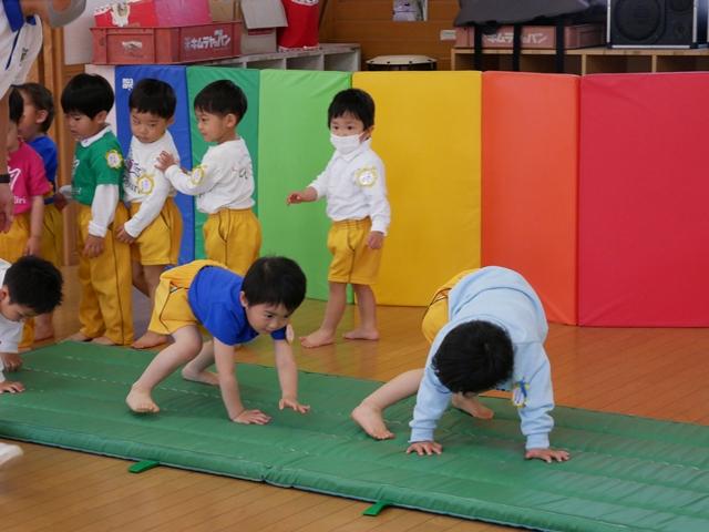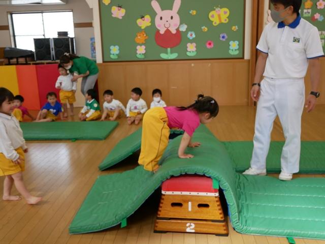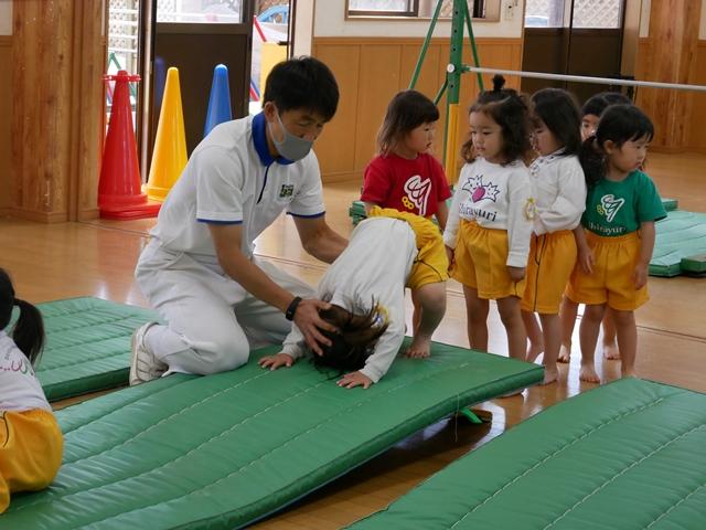 鉄棒やでんぐり返りにも挑戦します。