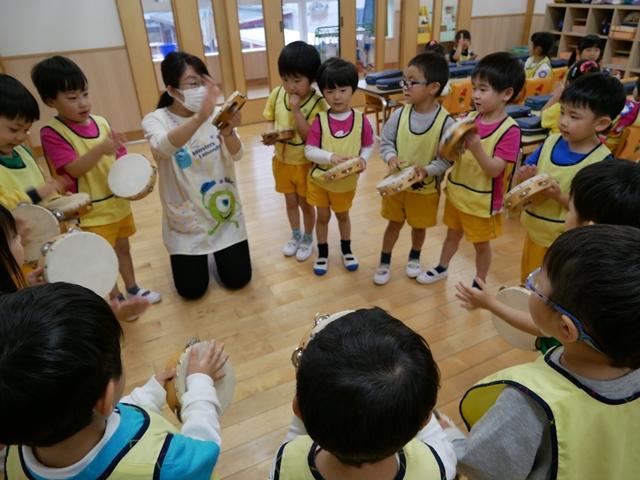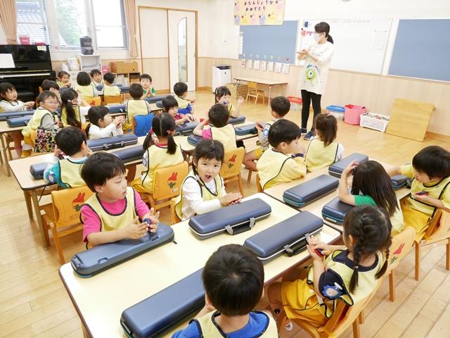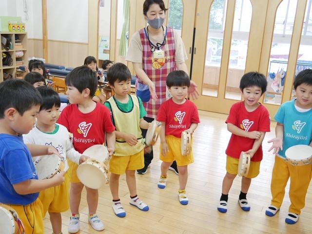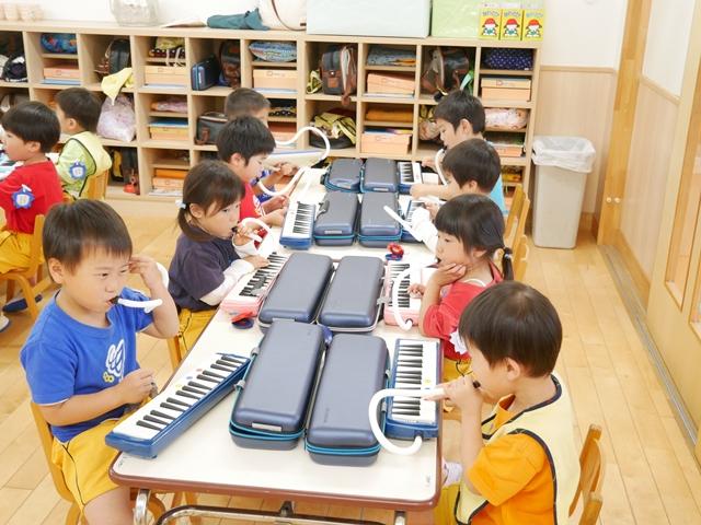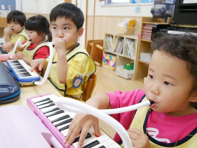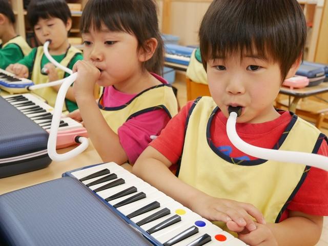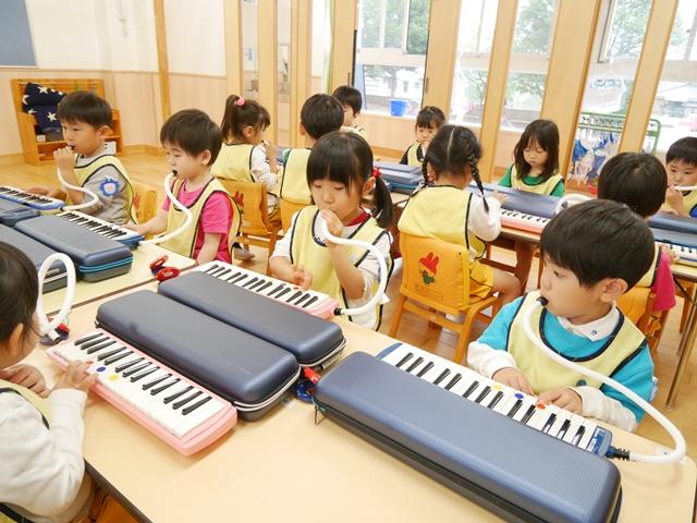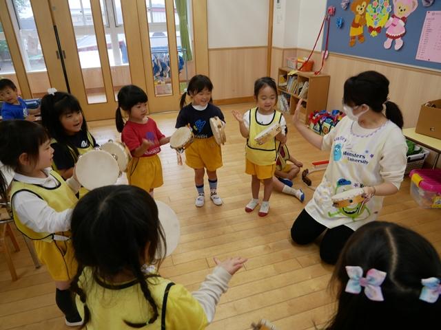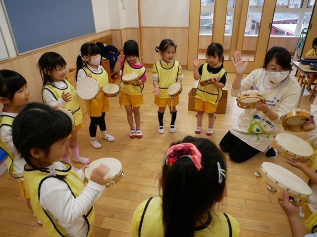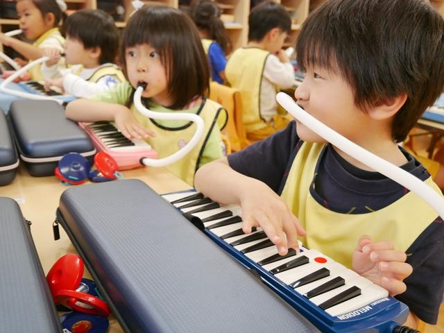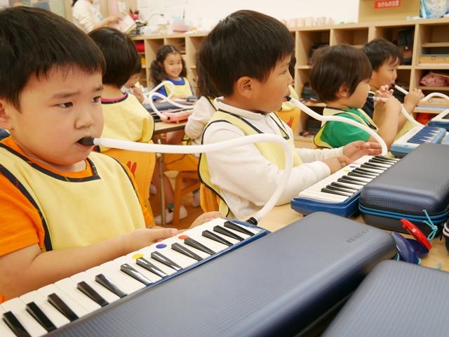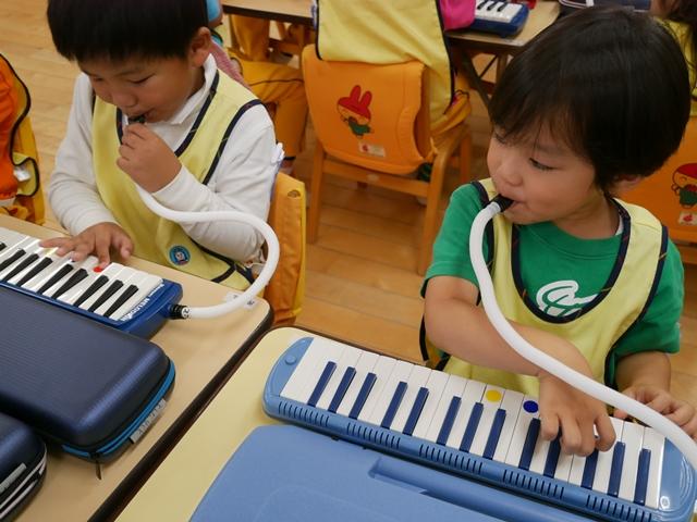 お歌を歌ったり、リズムに合わせてカスタネットやタンバリンをたたいたり、ピアニカの練習をしました。