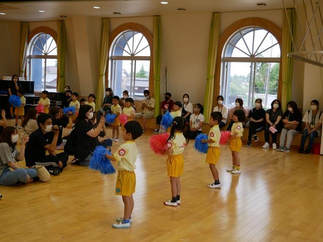 赤と青のポンポンをたくさんふって、元気いっぱい、お友達と息ぴったりのダンスを披露してくれました。