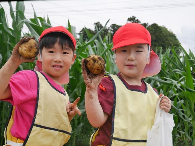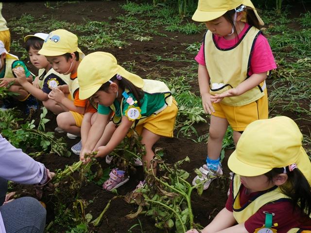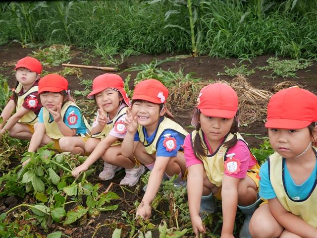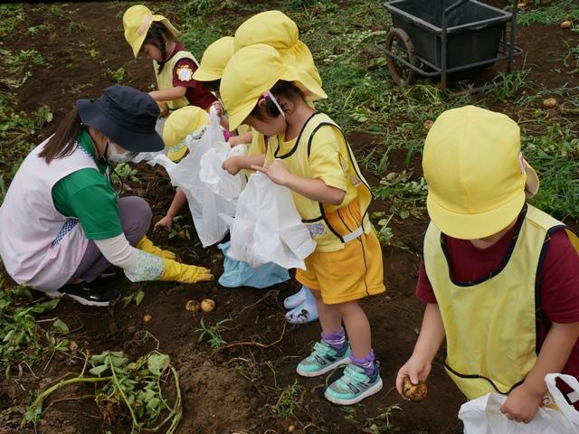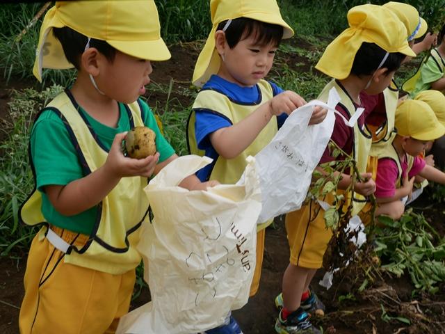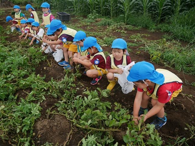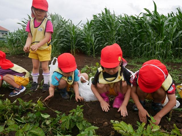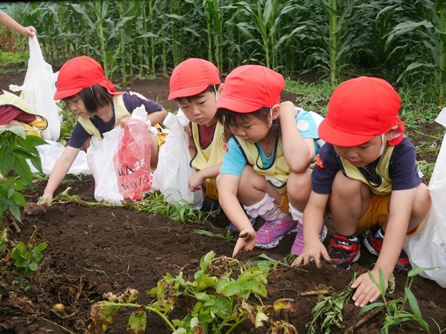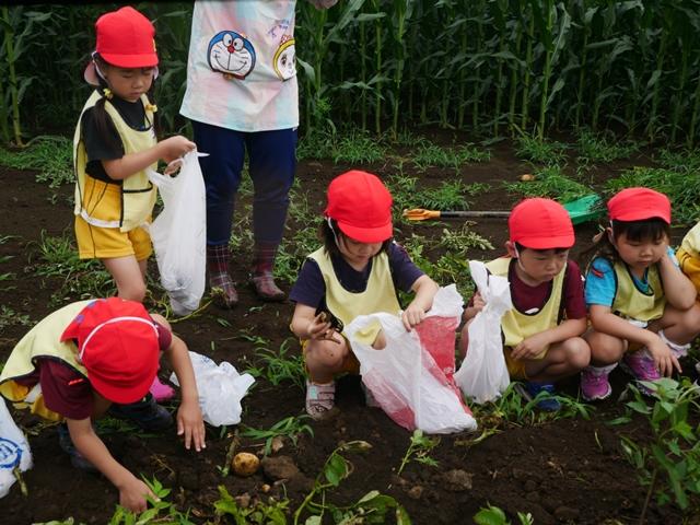 みんなの願いが通じたのか、雨も止み、つくし組・とんぼ組・ほし組のお友達はじゃがいも堀りに行きました。