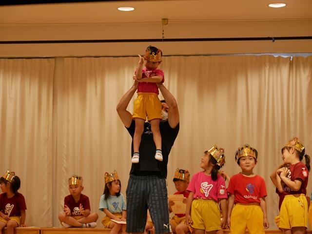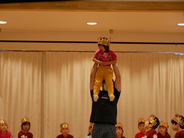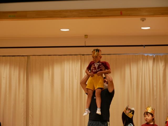誕生児のお友達は、ピカピカの冠をかぶり、ニコニコでステージにあがりました。