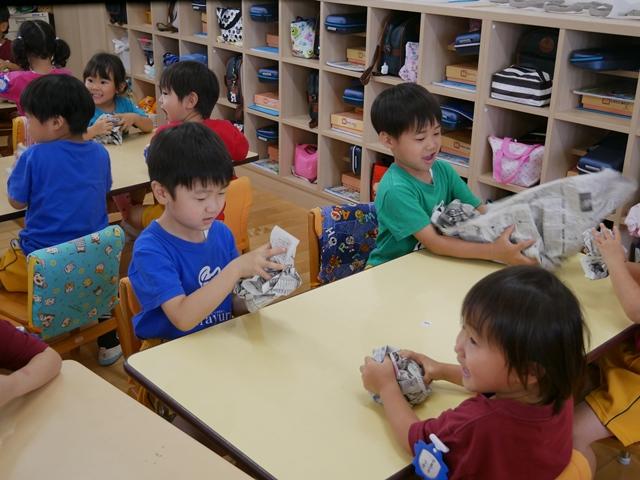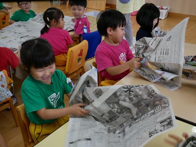 新聞紙をくしゃくしゃに丸めて・・・ どんな形の御神輿ができるでしょう(^o^)