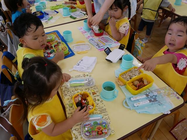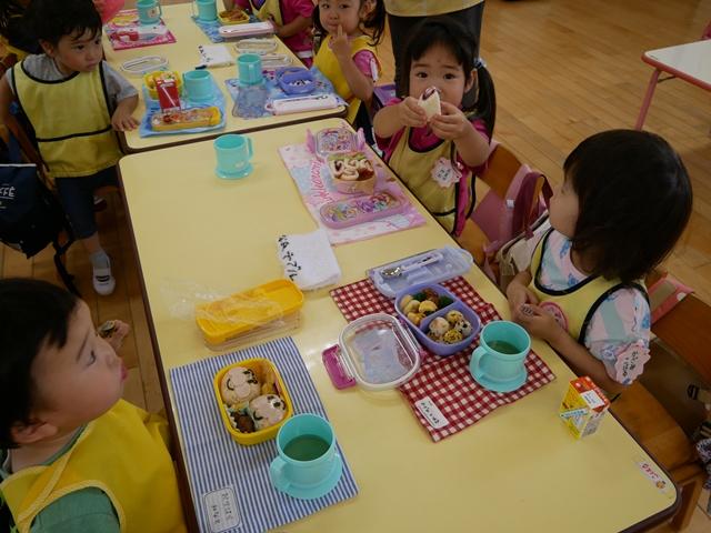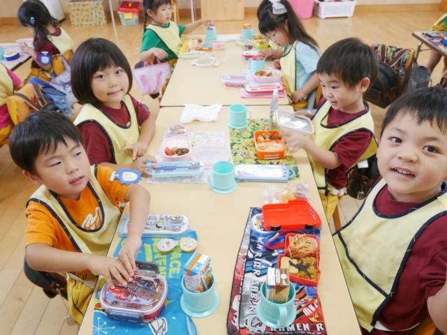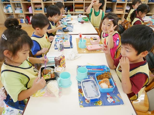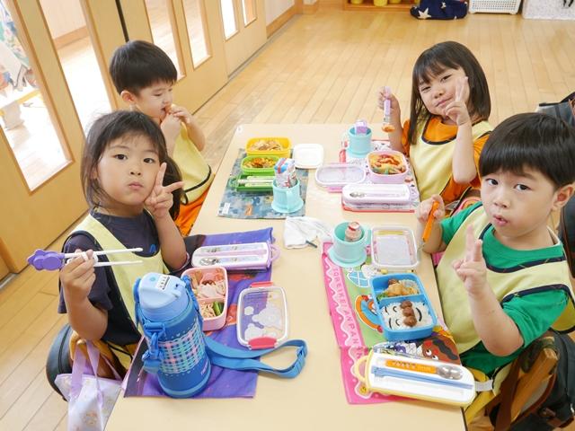 みんな手作りのお弁当を持って、ルンルンで登園してきました。