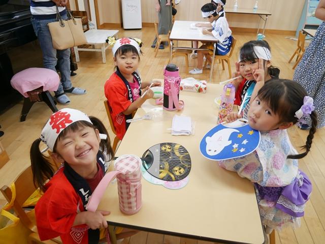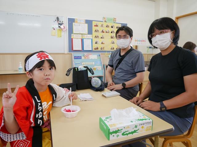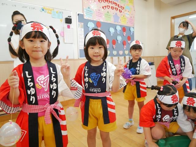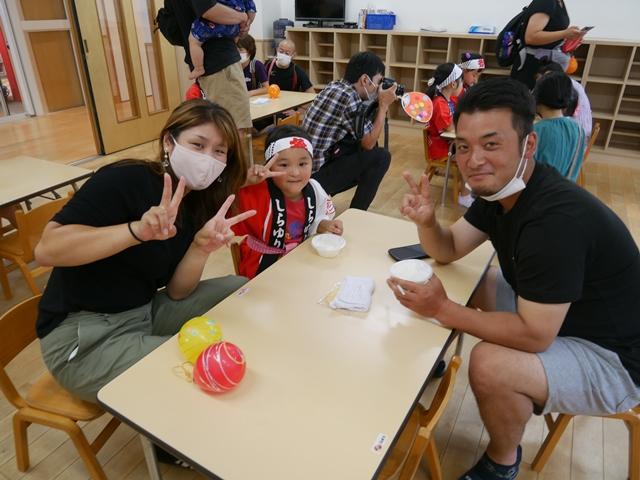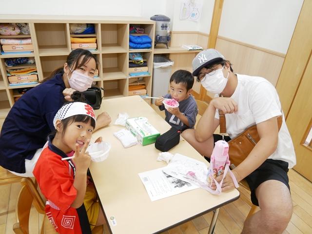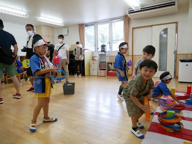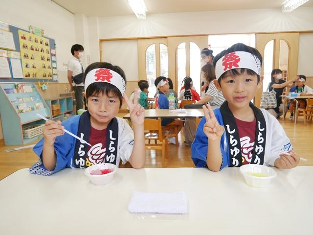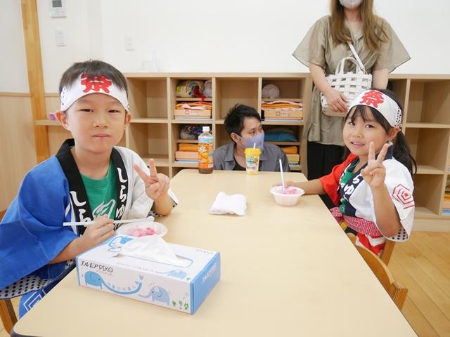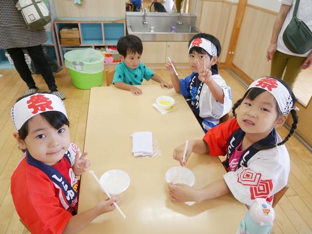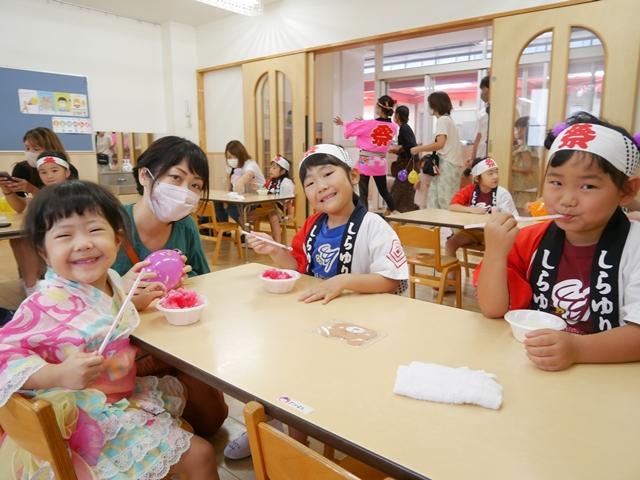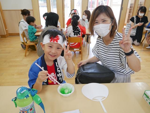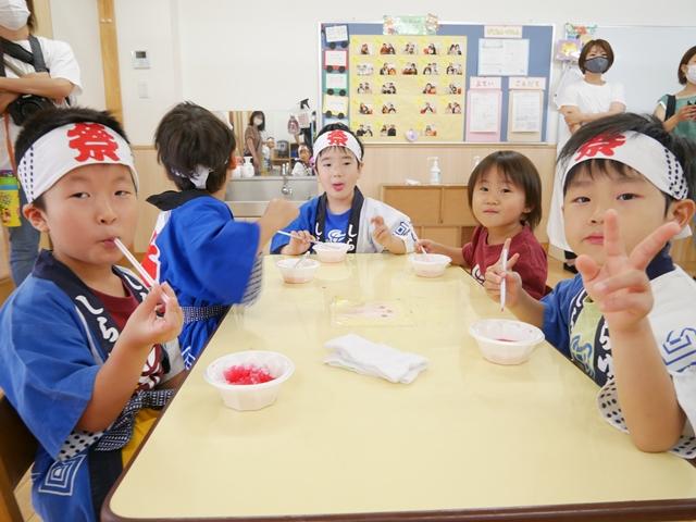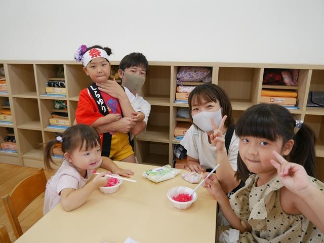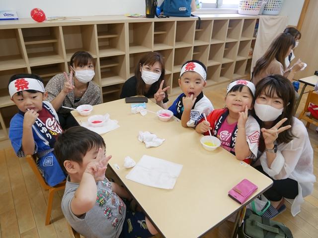 とんぼA・B組の部屋では、ヨーヨー釣りや輪投げを楽しみました。一階の部屋では、かき氷を食べてエネルギーチャージをしました!
