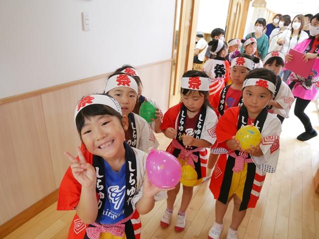 お祭り仕様に飾られた幼稚園は、心が躍り楽しみ倍増ですね。