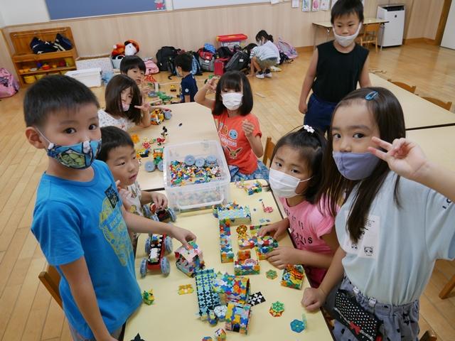 午後は、自由遊び。カードゲームやブロック、積み木など好きな物で遊びました。