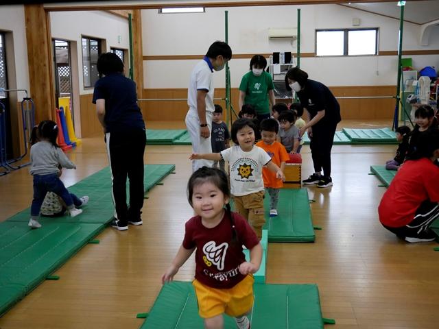 次は、跳び箱からジャンプしたり、橋を渡ったり、順番に挑戦していきます。
