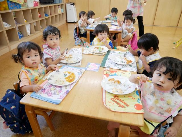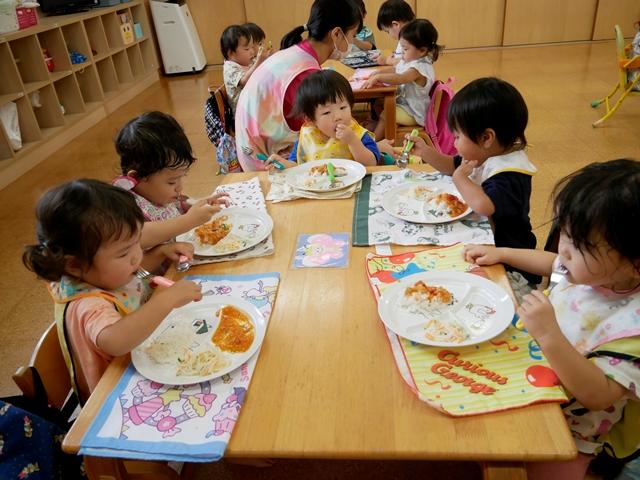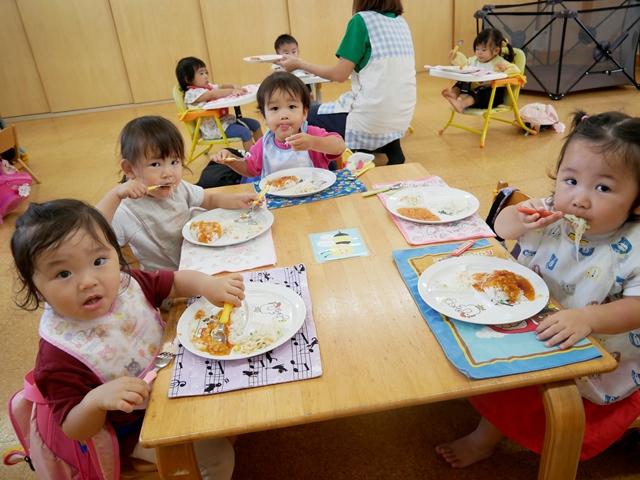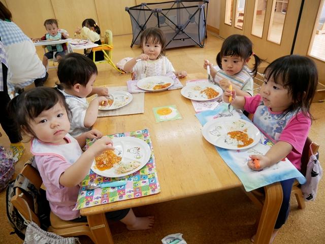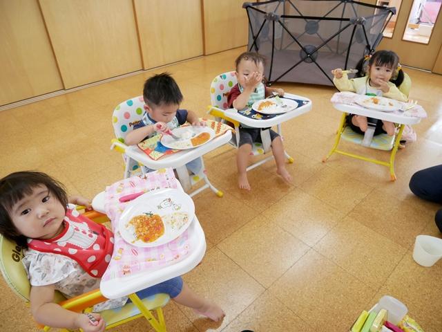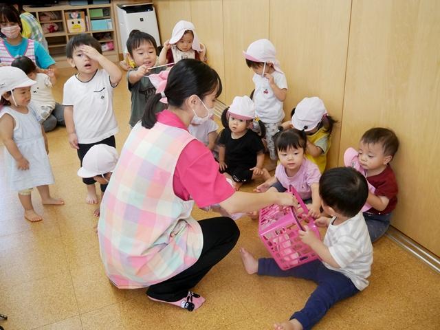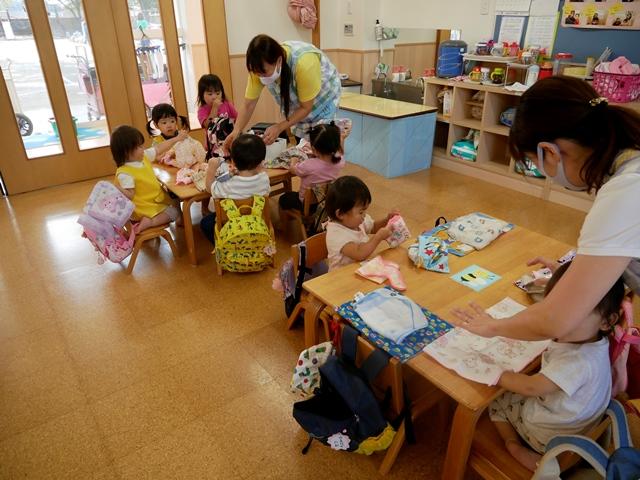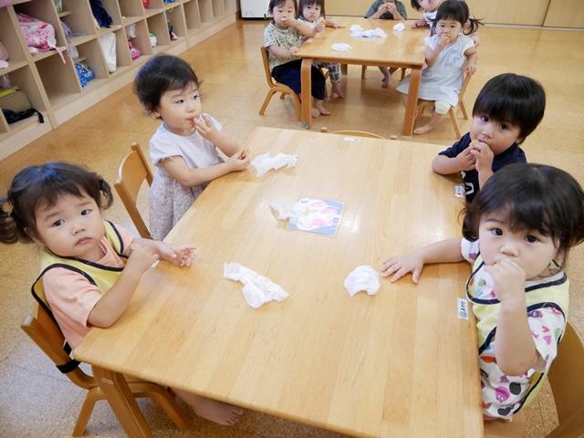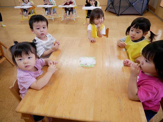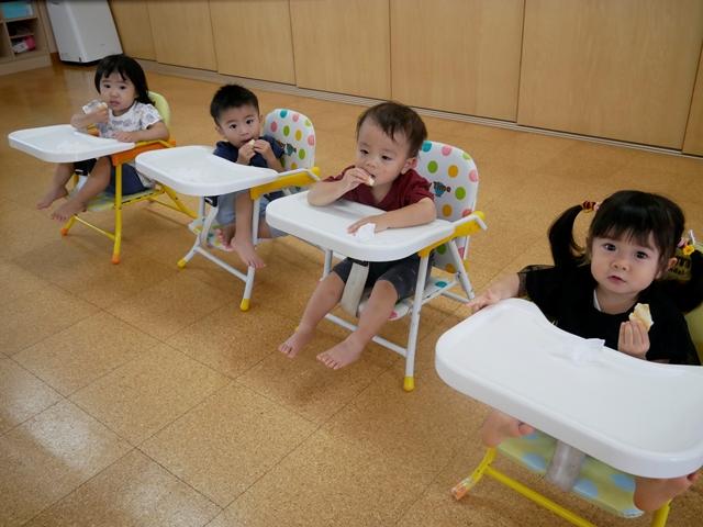 絵本を見た後は、朝のお歌を歌い、大好きなおやつの時間です♪