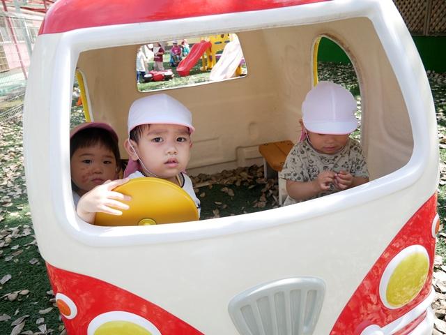 カエルを見つけたり、どんぐりや落ち葉を拾って秋を感じて遊びました♪